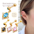 ラグジュアリーな煌きで勝負。 大粒オーバルキュービックが際立つ スクエア型チャーム♪ ゆらゆら揺れるデザインは、ヘリックスはもちろん 耳たぶにもとっても可愛い! | |