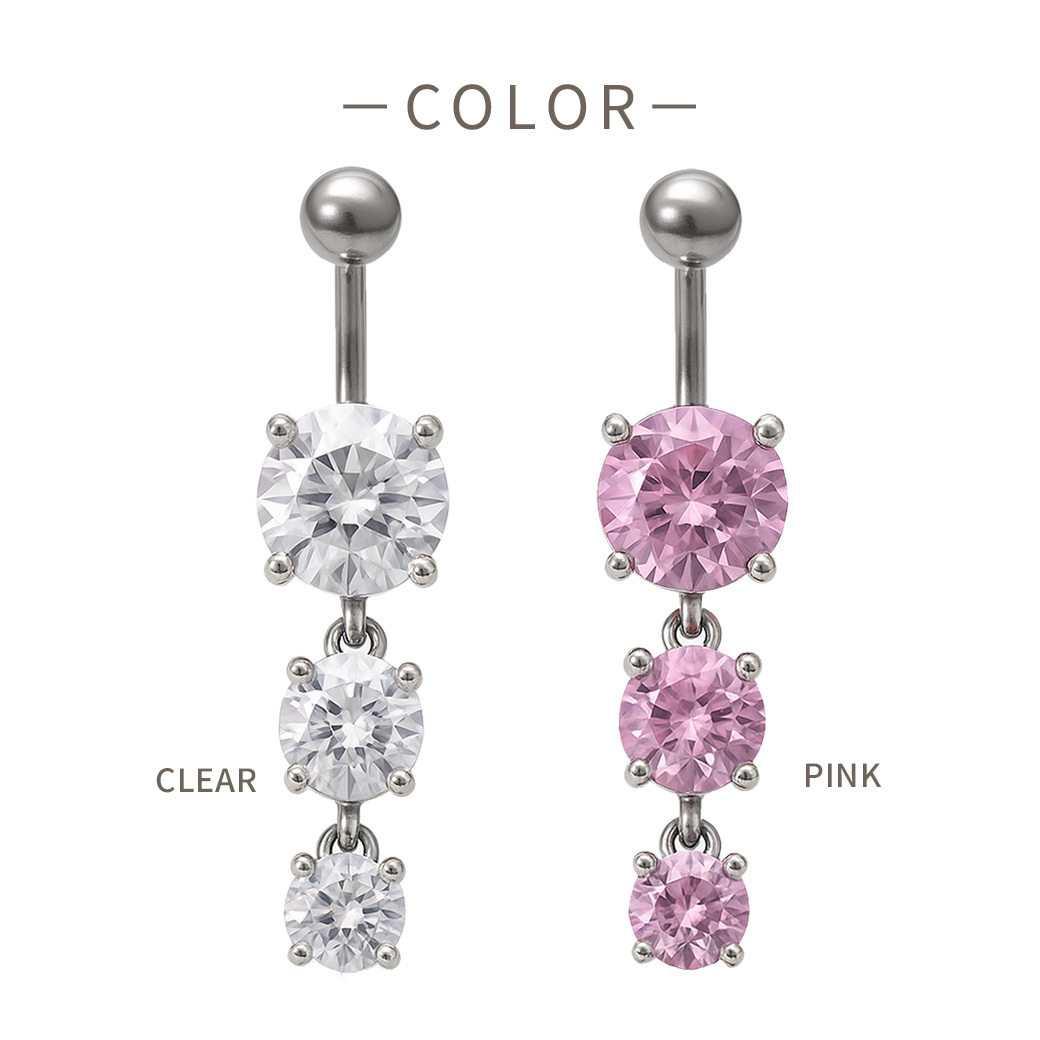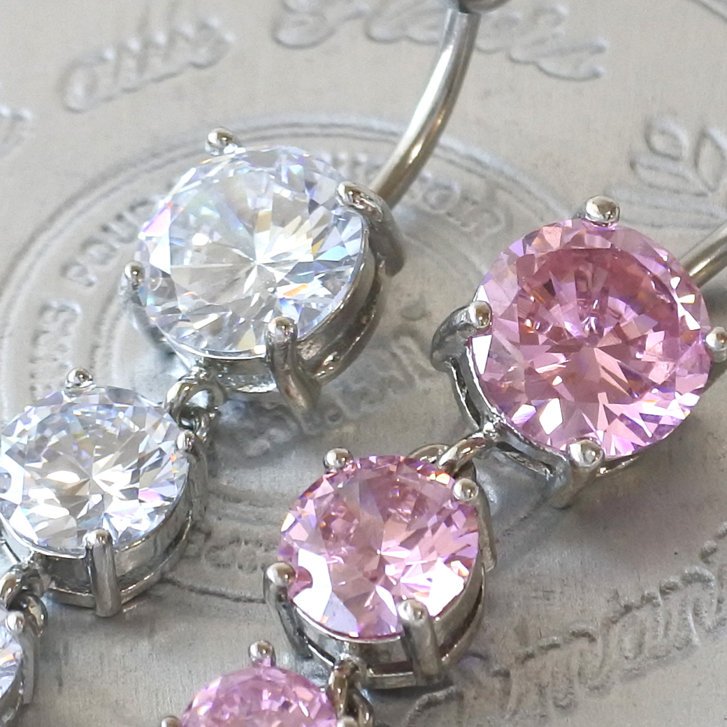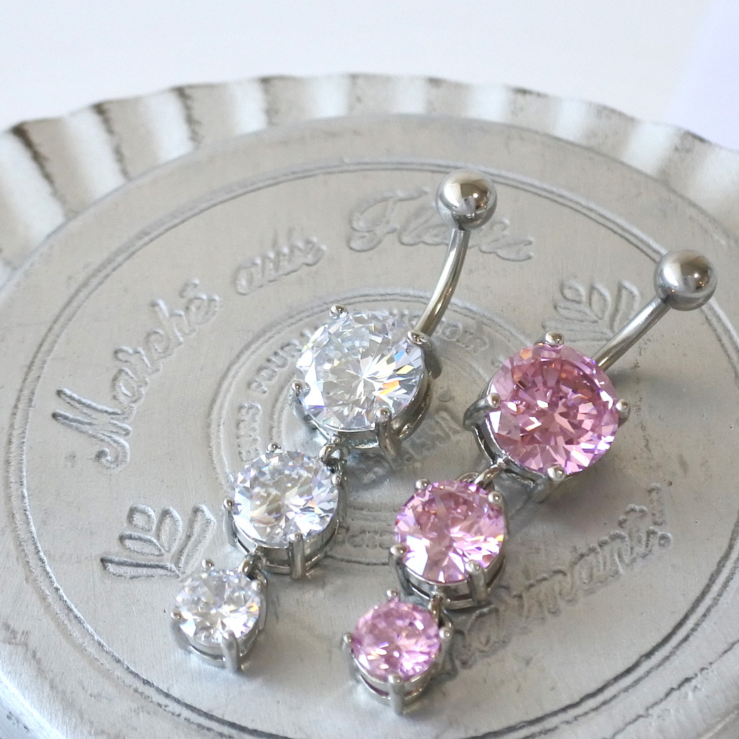 さまざまなデザインがあるへそピアス。大ぶりなジュエルなど光りもののへそピアスは、おへそまわりがちらっと見えるときや水着のときに、ウエストの中心に視線をひきつけます。またチェーンなど縦長のデザインは、体のラインも立てに長く見せてくれる効果大。ちょっとだけ痩せ見せ効果もありそうです!