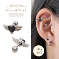 【4月再入荷】【3月新作】[14G 16G ]媚びない可愛さを演出キュービック ウィング ハート デザインストレート 軟骨ピアス ヘリックス ボディピアス 0320