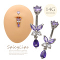 [14G ]上品で華やかな総キュービック バタフライ ダブルジュエル 同色立て爪キャッチ へそピアス ボディピアス [パープル ]0361