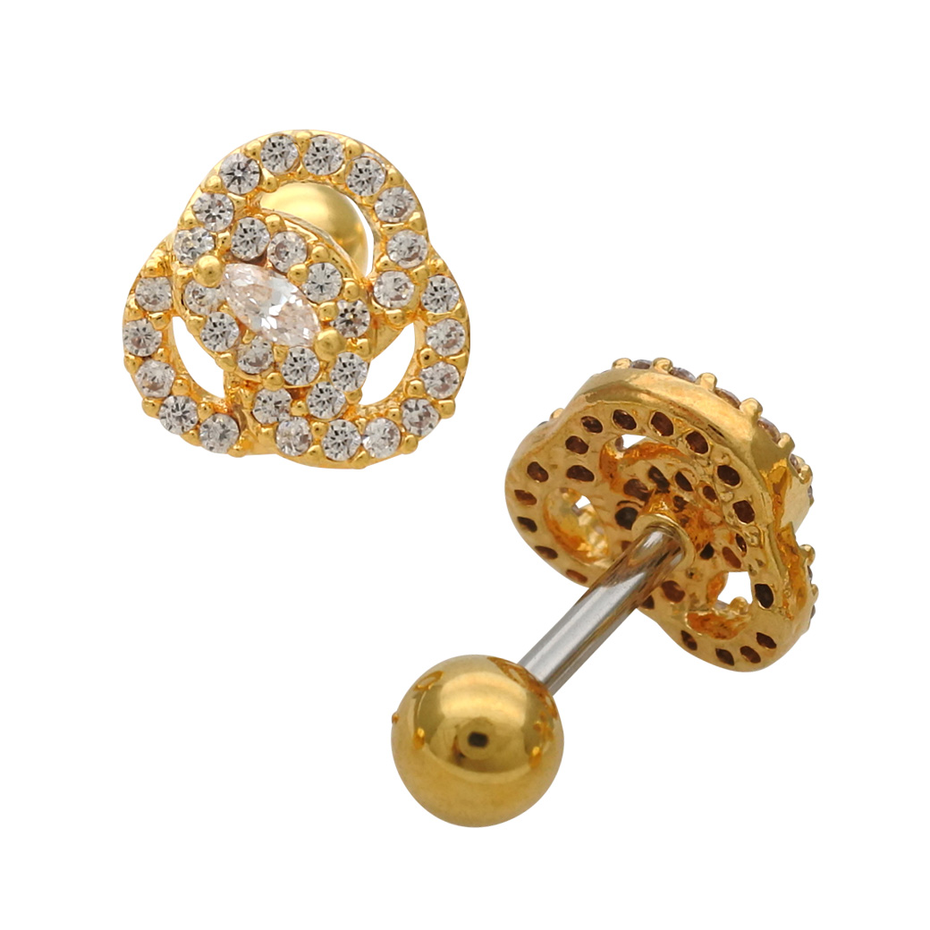 【9月新作】[14G 16G ]さりげなく特別感のある存在感♪キュービックジルコニアフラワー 花 ストレート 軟骨ピアス ヘリックス ボディピアス 1010