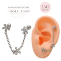 オールステンレス素材が嬉しい! シャフトはもちろん!ジュエルも全てが サージカルステンレス316Lです。 ステンレス素材って何がいいの? ・金属アレルギーが出にくいので安心。 ・変色しにくいので付けっぱなしでもOK! ※アレルギーには個人差があります。 遊び心ある可愛さ☆2ホールフラワージュエル 華奢なチェーンの細いラインが寄り添い、 横顔の印象まで和らげてくれます。 | |
