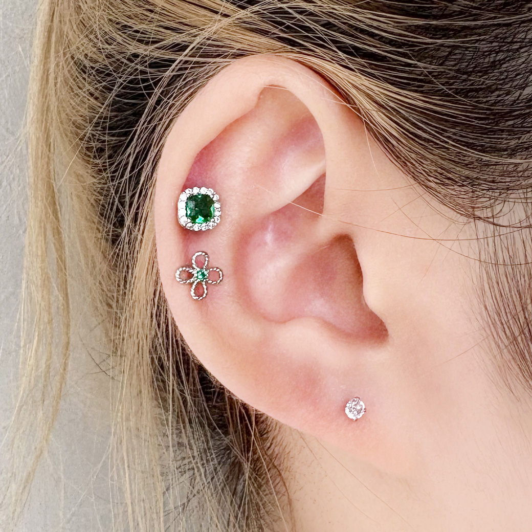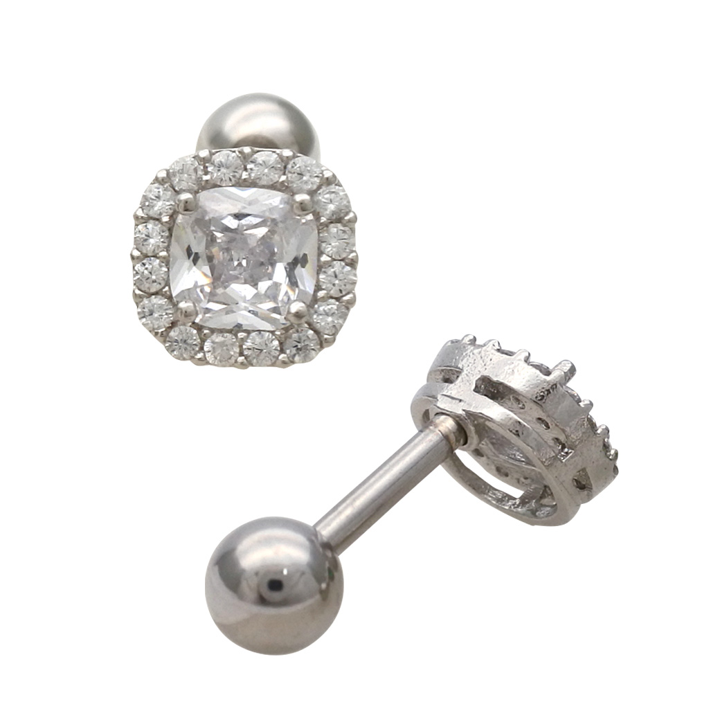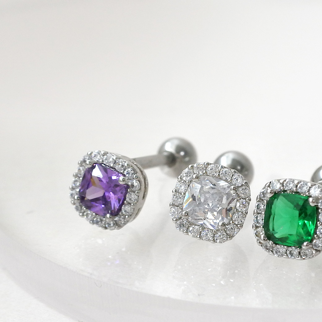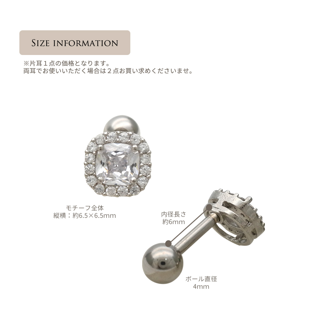 【10月新作】[14G 16G ]スクエアに丸みを帯びた洗練されたシンプルなフォルム。キュービックジルコニア 軟骨ピアス ヘリックス ボディピアス 0093