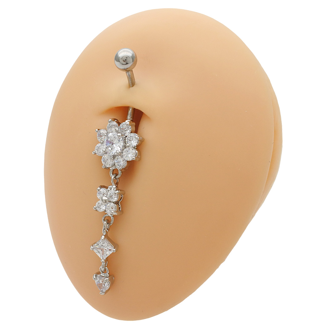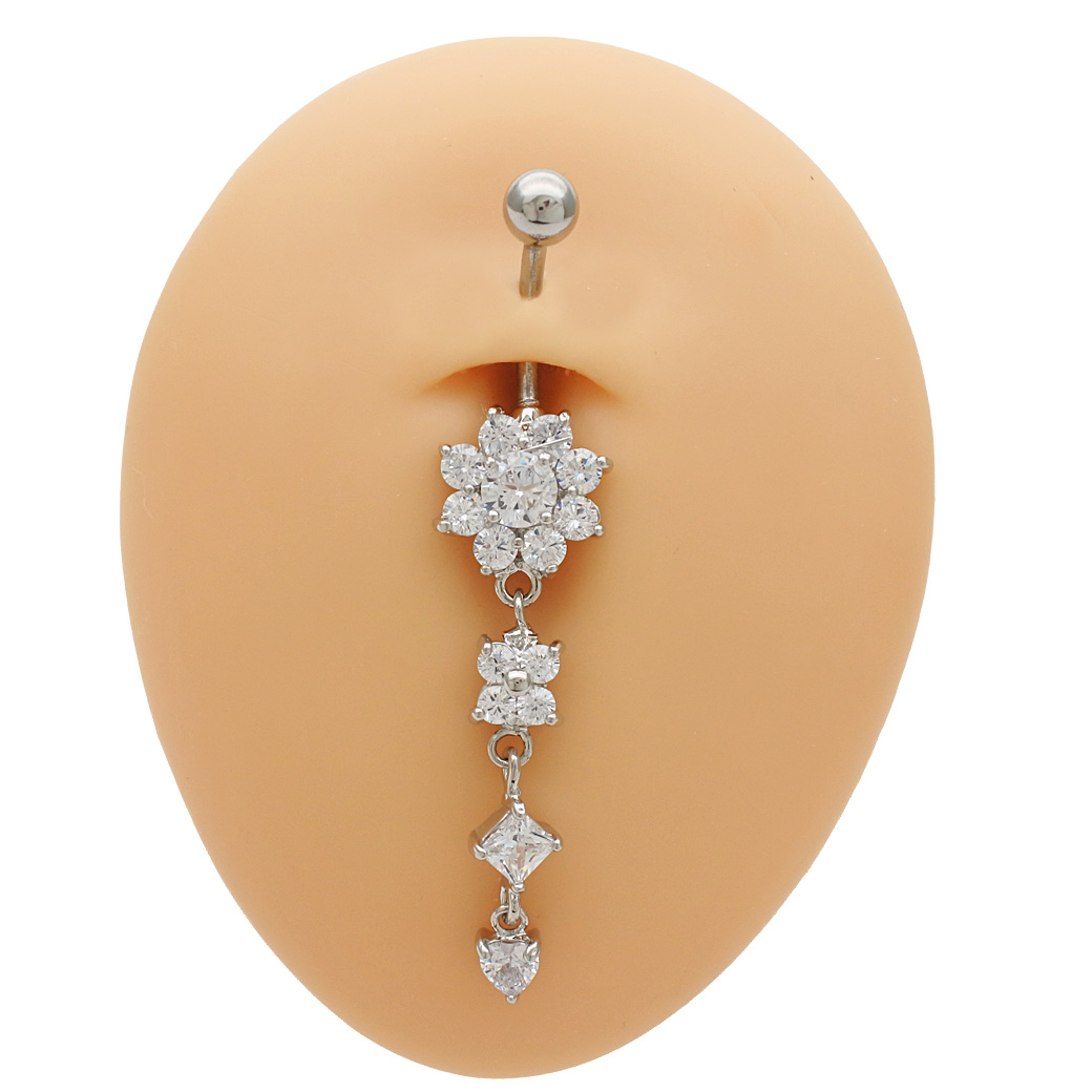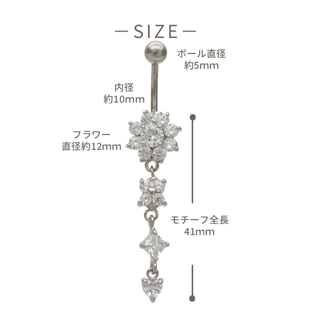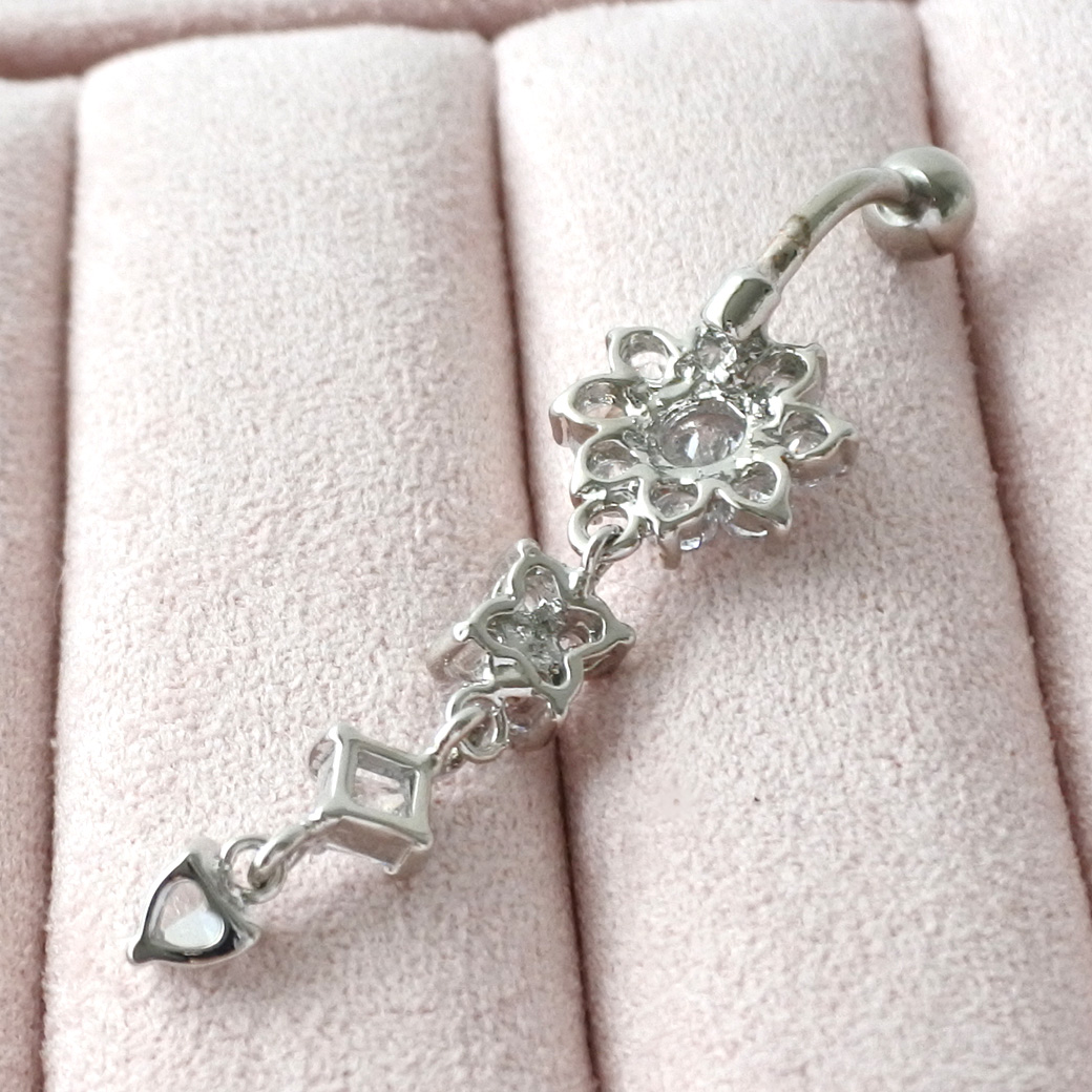 【11月新作】[14G ]輝き溢れるラグジュアリー デザイン キュービック フラワー クローバー ハート ジュエル へそピアス ボディピアス 0181