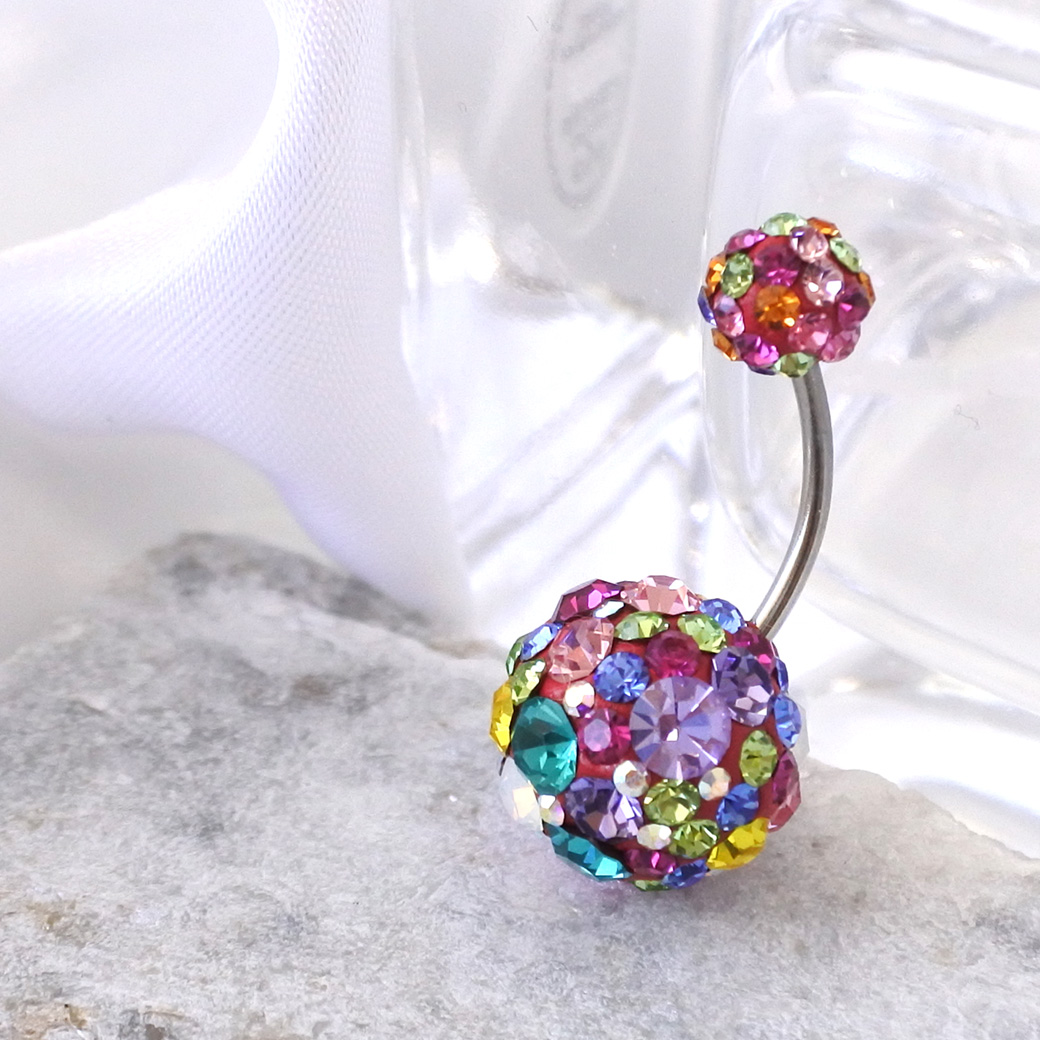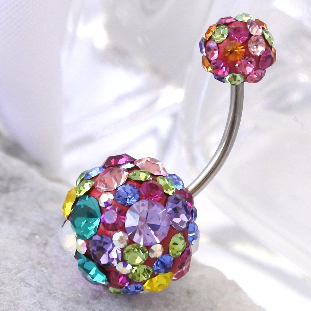 【10月新作】[16G ]ラインストーン がキラキラ ! 大粒 ダブルジュエル へそピアス 耳たぶ ボディピアス 0200