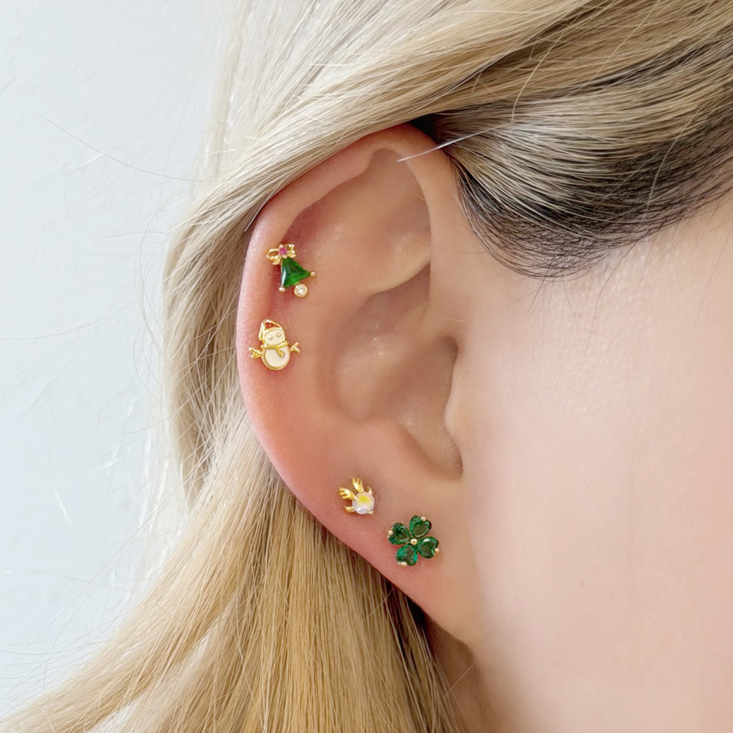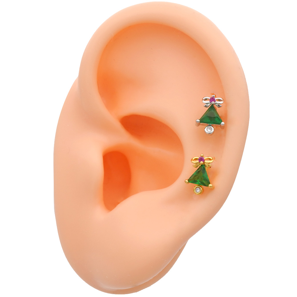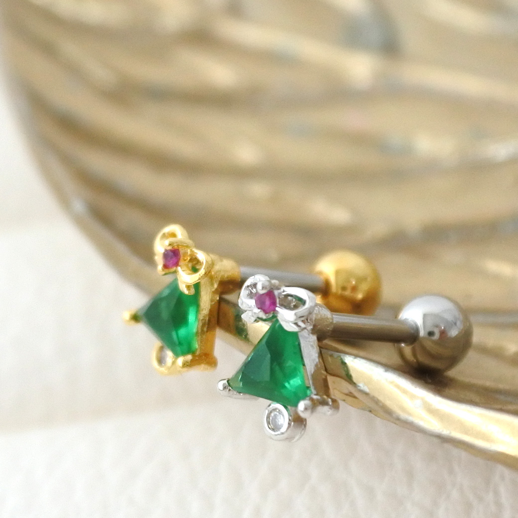 【11月新作】[14G 16G ]★クリスマス 限定★大人可愛いリボン ツリー ♪冬ピアス ストレート 軟骨ピアス ヘリックス ボディピアス 0270
