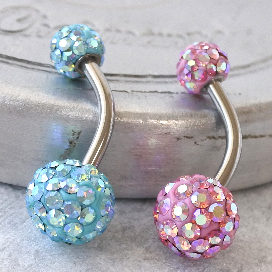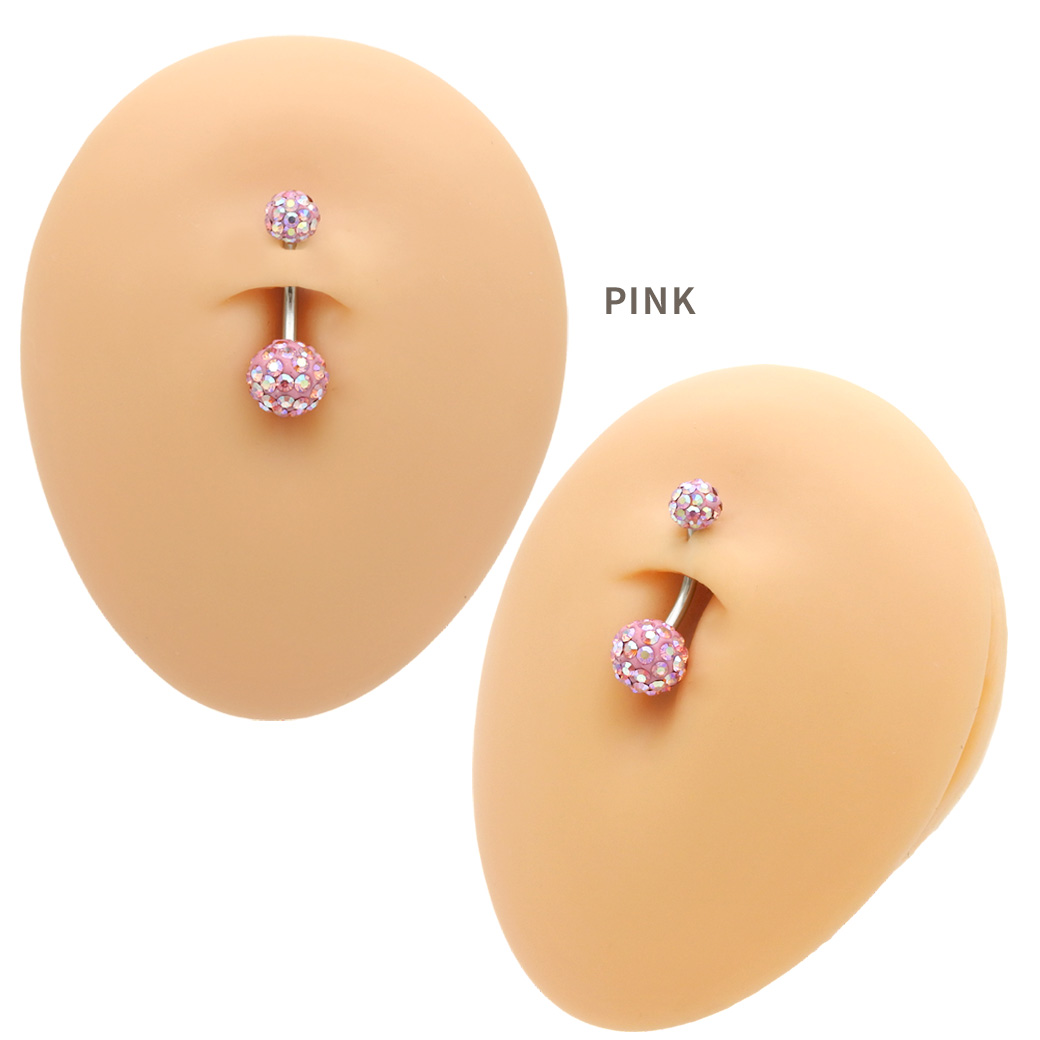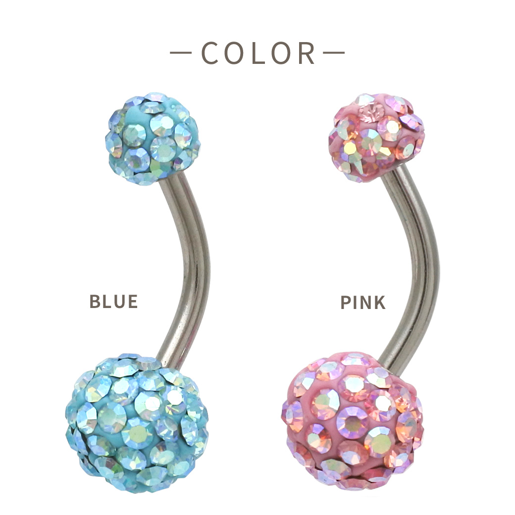 【11月新作】[14G ]コーデの可愛いポイントに♪パステル ダブル パヴェボール へそピアス ボディピアス 0304