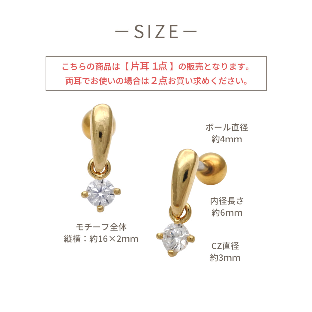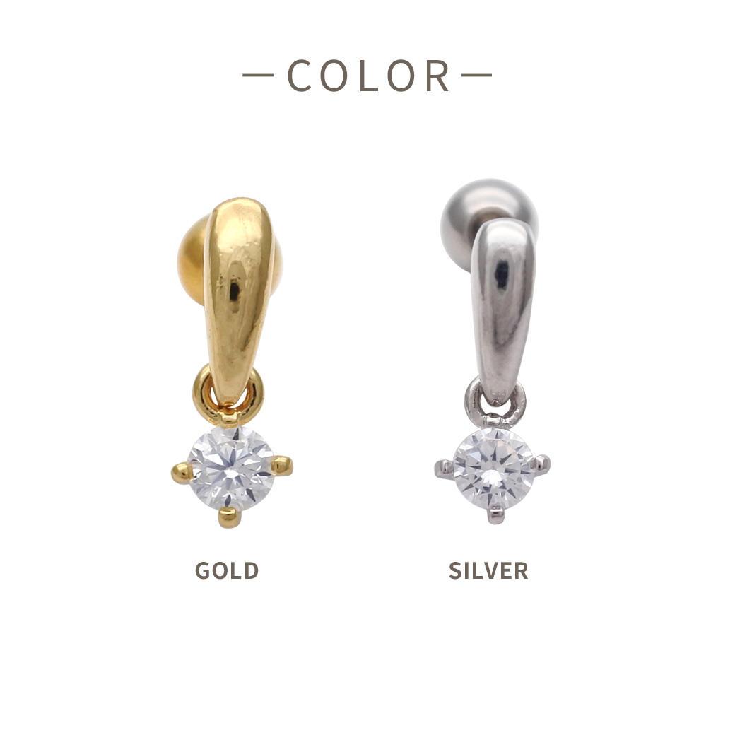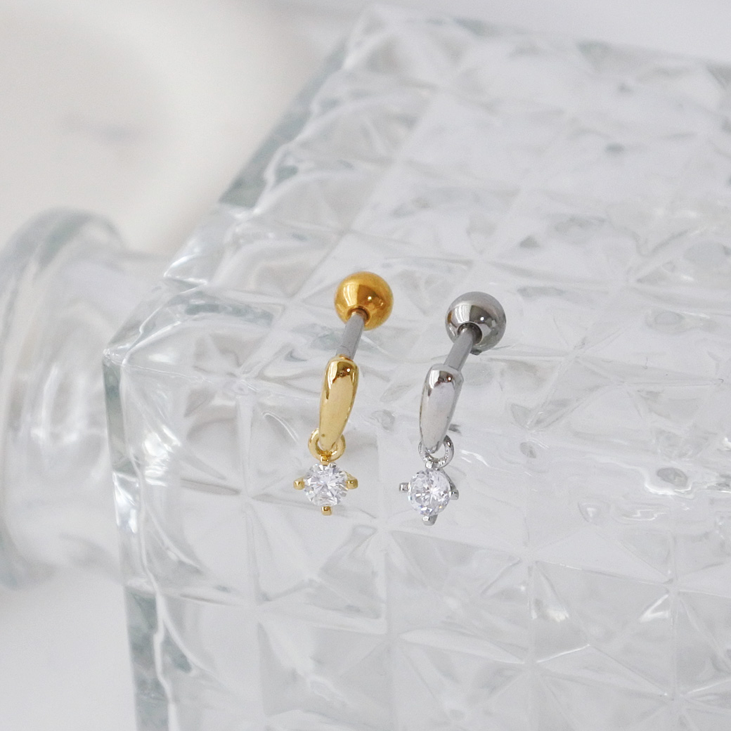 【3月新作】[16G ]ボトムのキュービックジルコニアが揺れる上品なドロップ デザインストレート 軟骨ピアス ヘリックス ボディピアス 0439