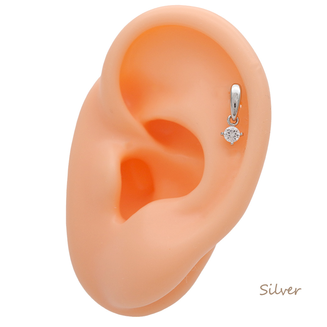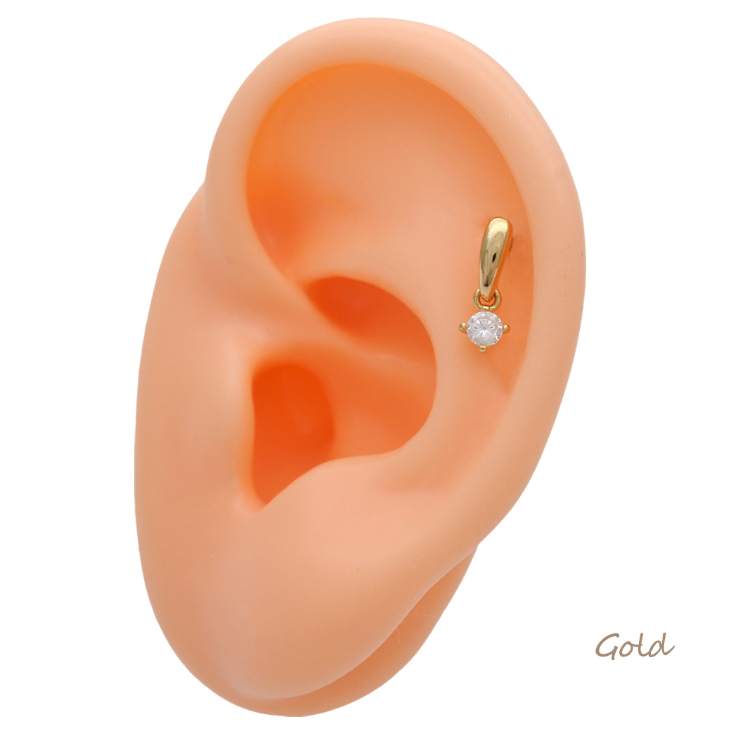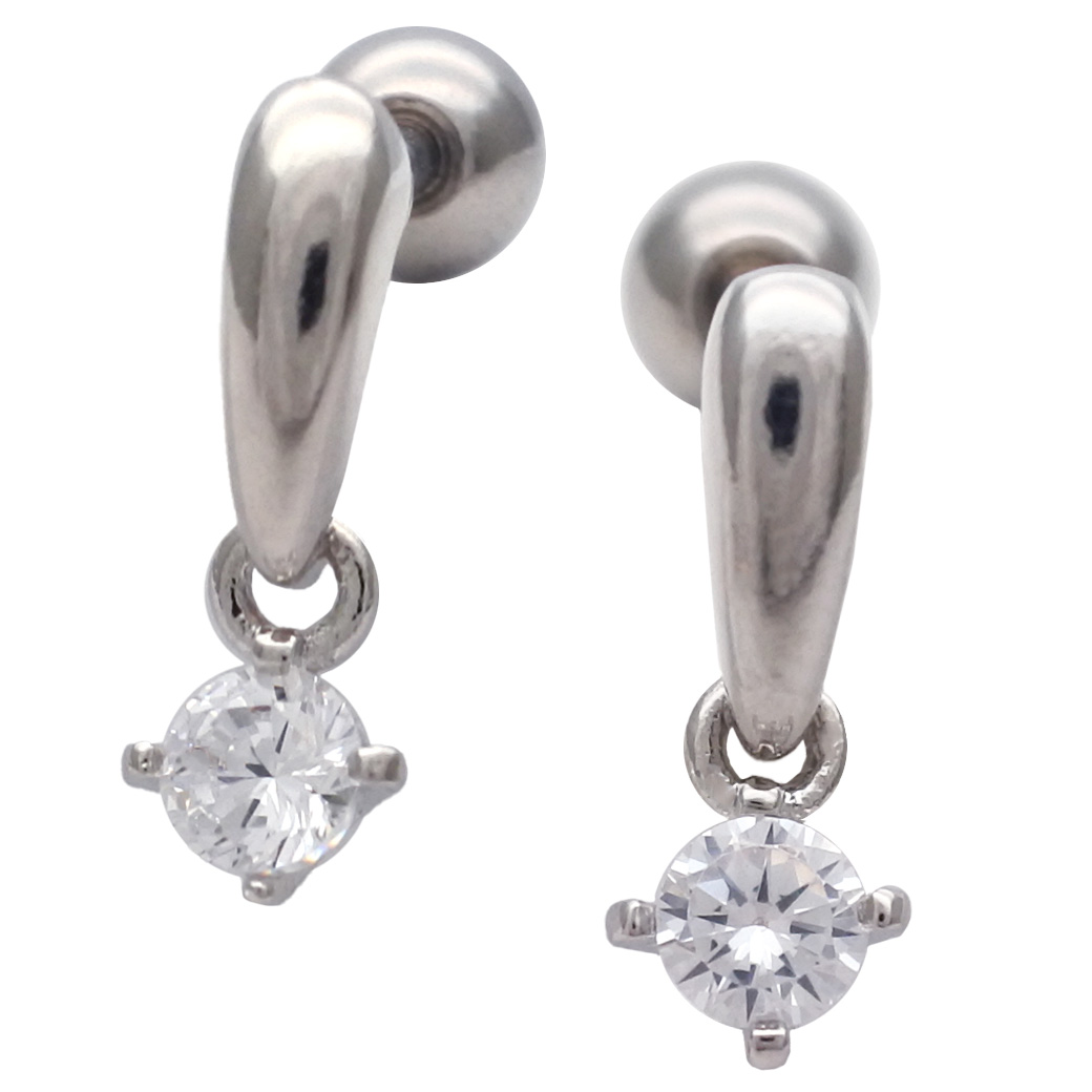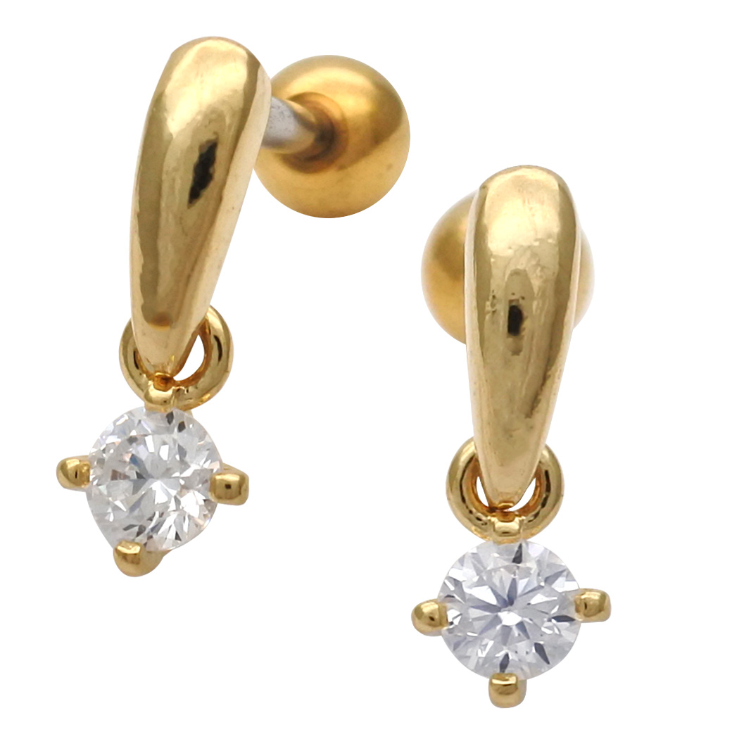 【3月新作】[16G ]ボトムのキュービックジルコニアが揺れる上品なドロップ デザインストレート 軟骨ピアス ヘリックス ボディピアス 0439