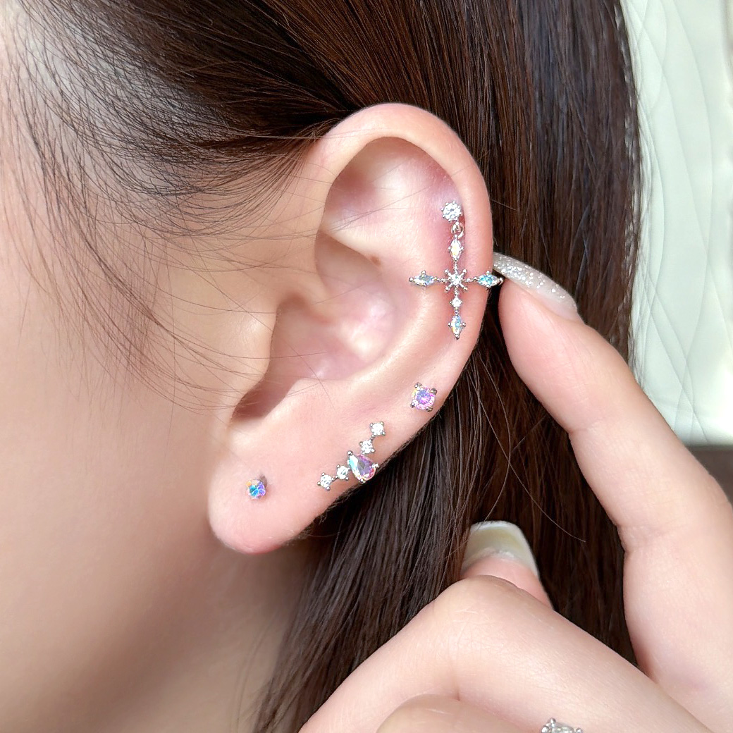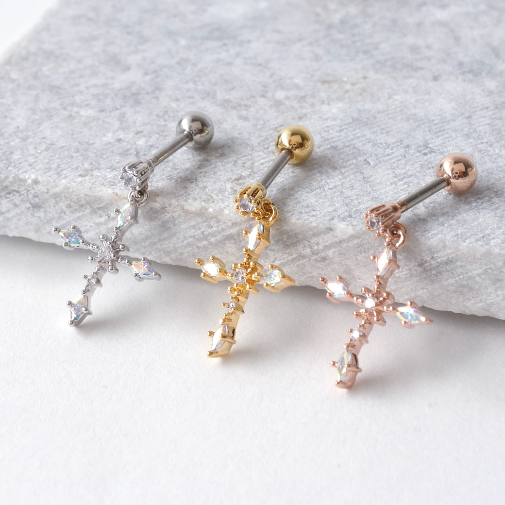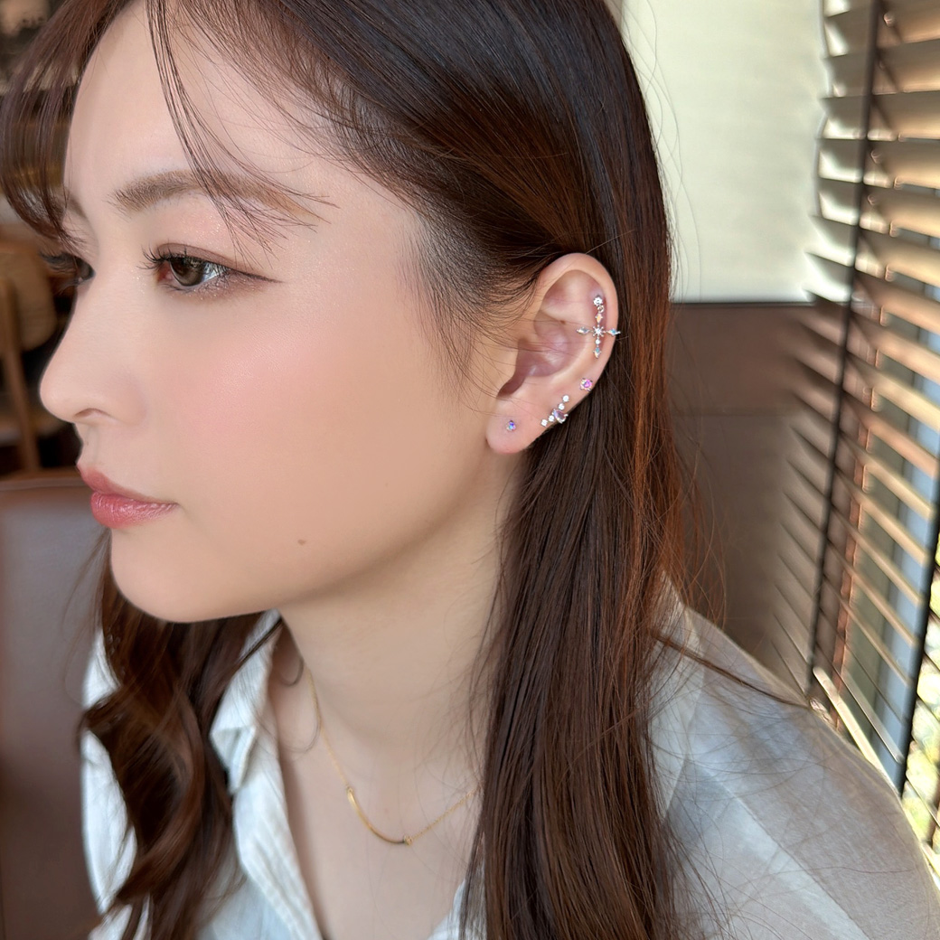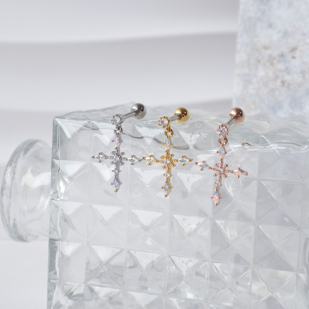 繊細な輝きを放つジュエルと、 動くたびにきらめくオーロラのクロスチャームが印象的なデザイン。 いつものコーデをワンランクアップしてくれるアイテムです。 | |