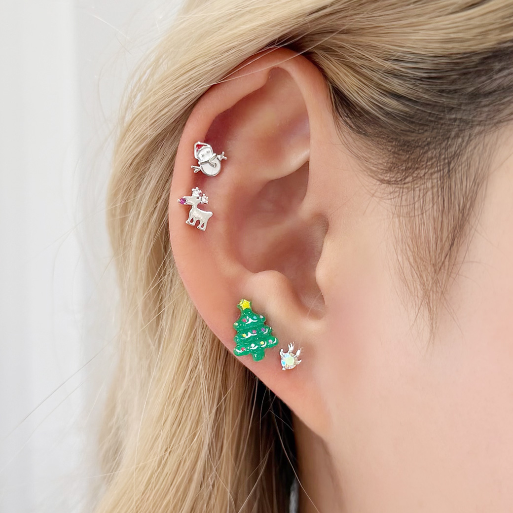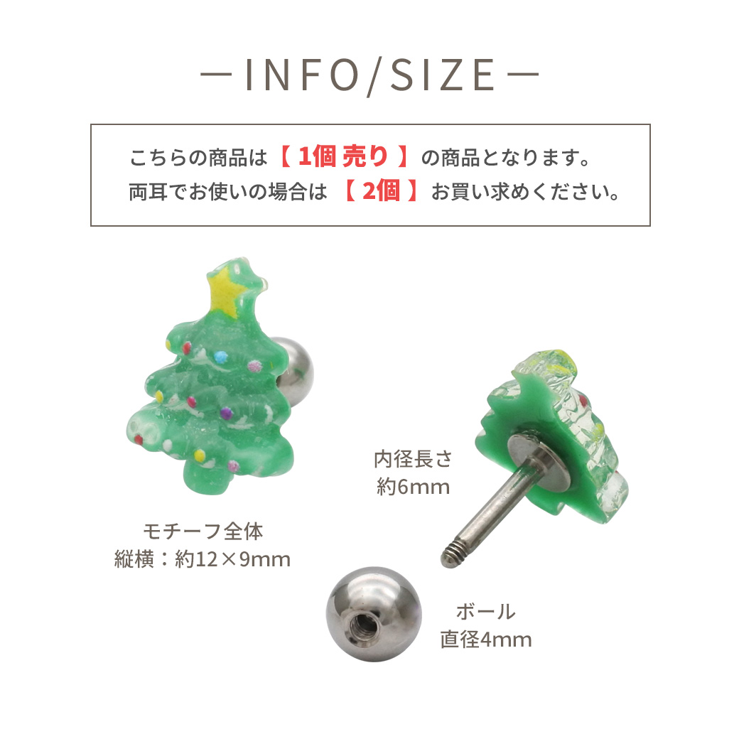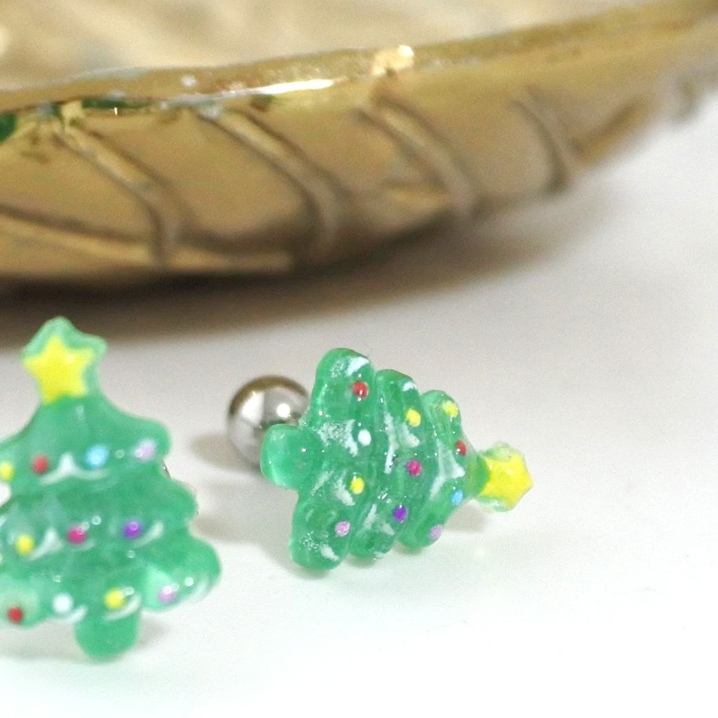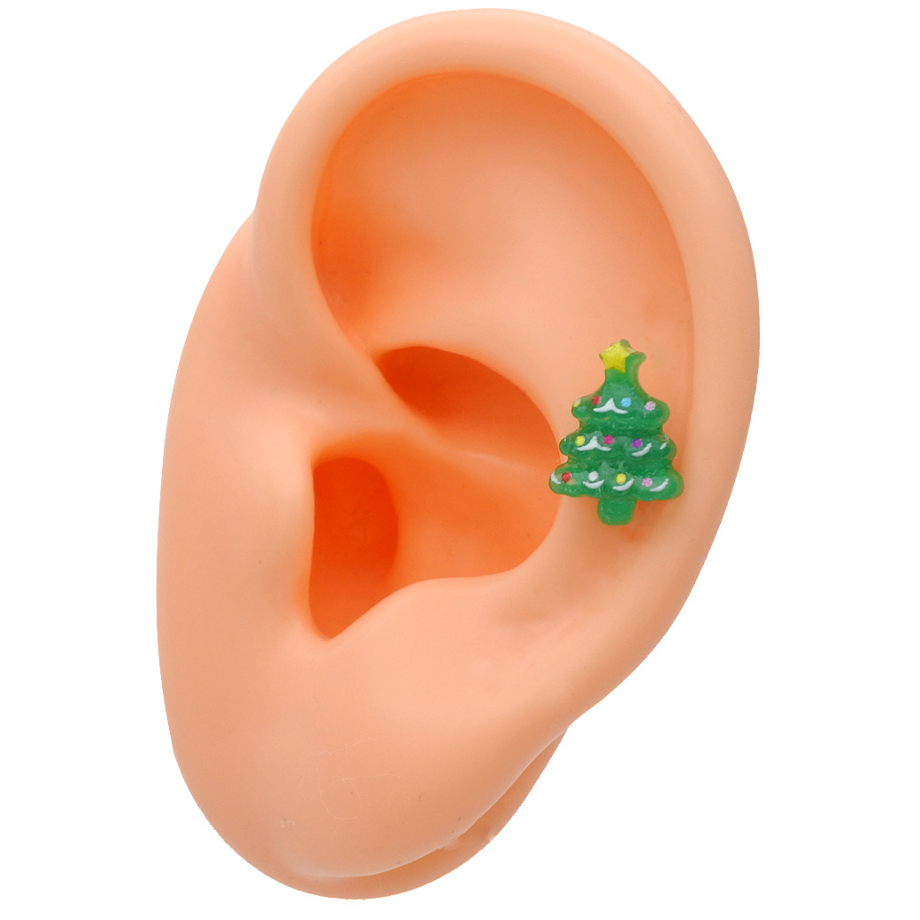 【12月新作】[16G ]★クリスマス 限定★ころんと立体的なツリー 透明感たっぷりで、耳元を一気にクリスマス 気分にストレート 軟骨ピアス ヘリックス ボディピアス 0924