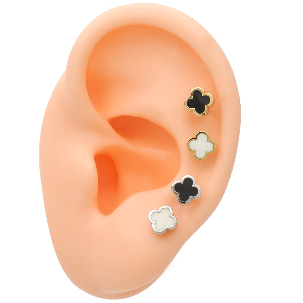 【10月新作】[14G 16G ]程よいサイズがかわいい♪ツヤっと輝くクローバー モチーフ ストレート 軟骨ピアス ヘリックス ボディピアス 1003