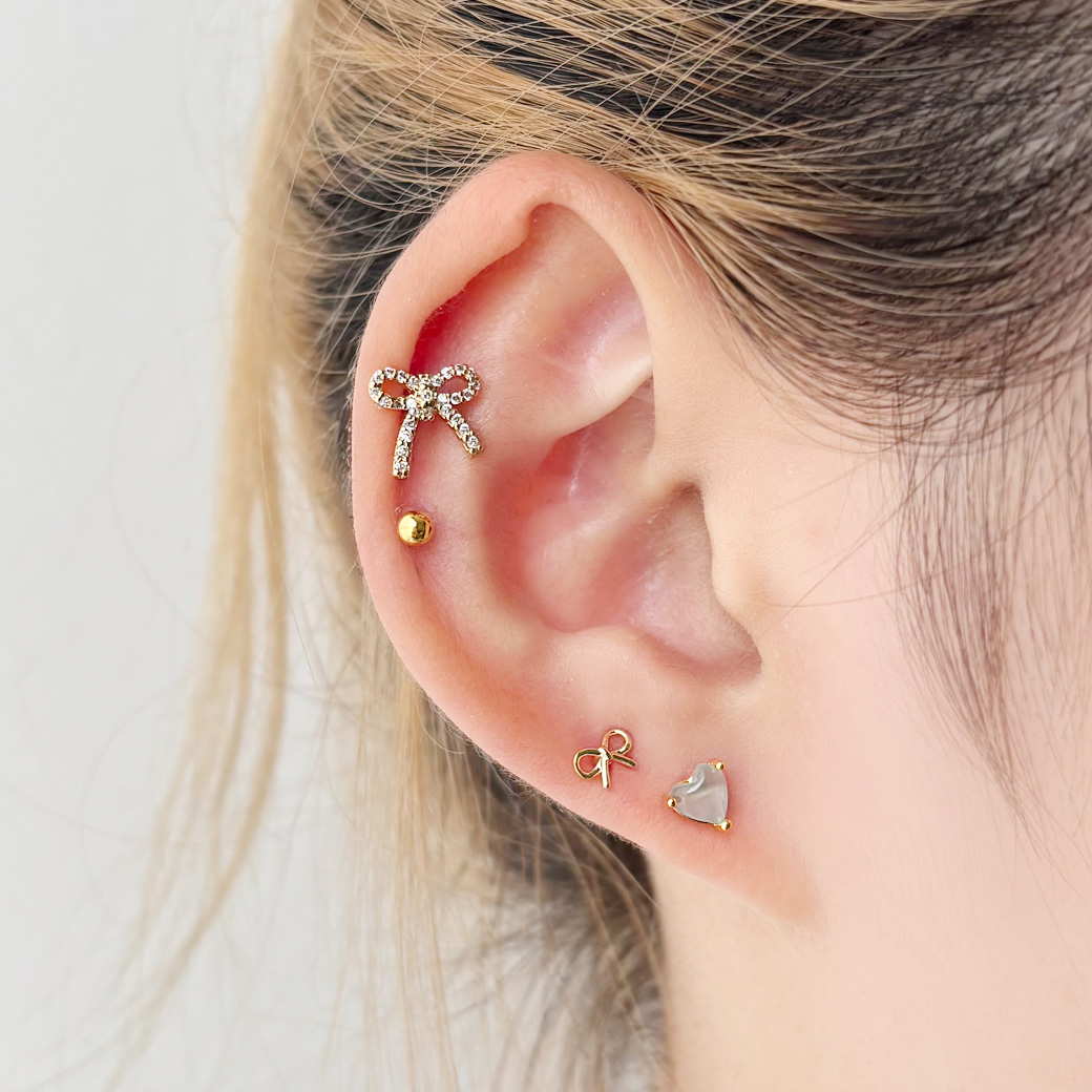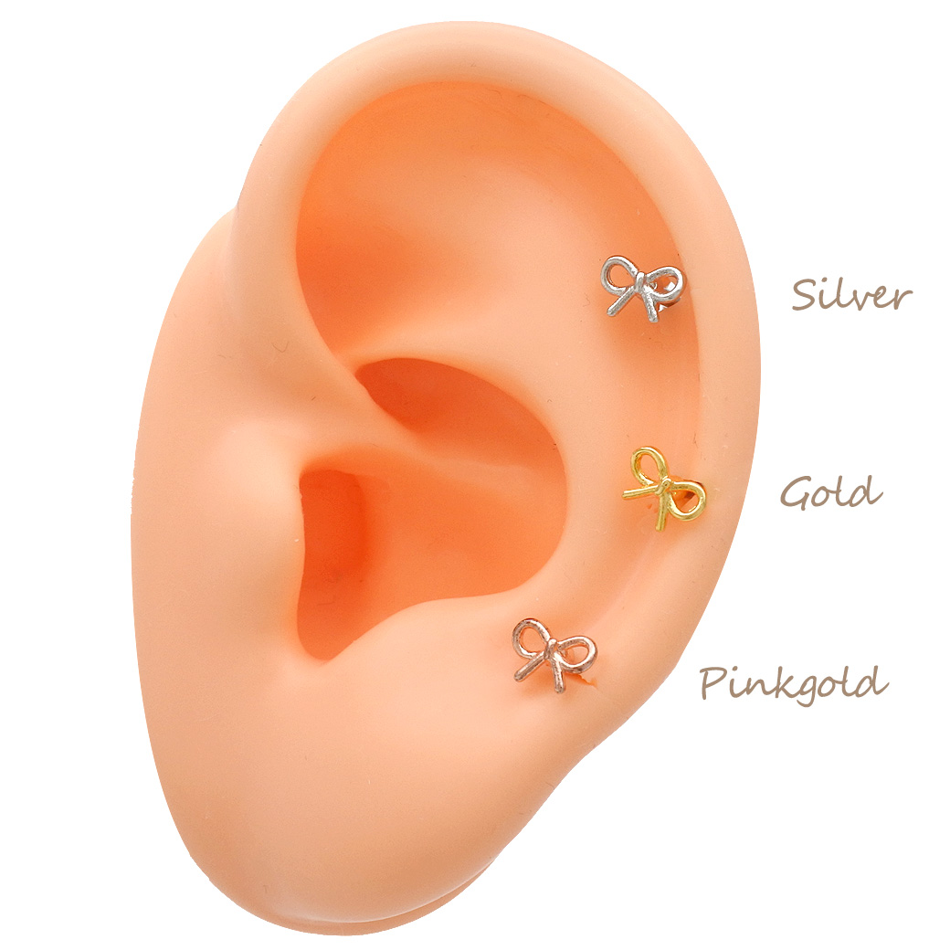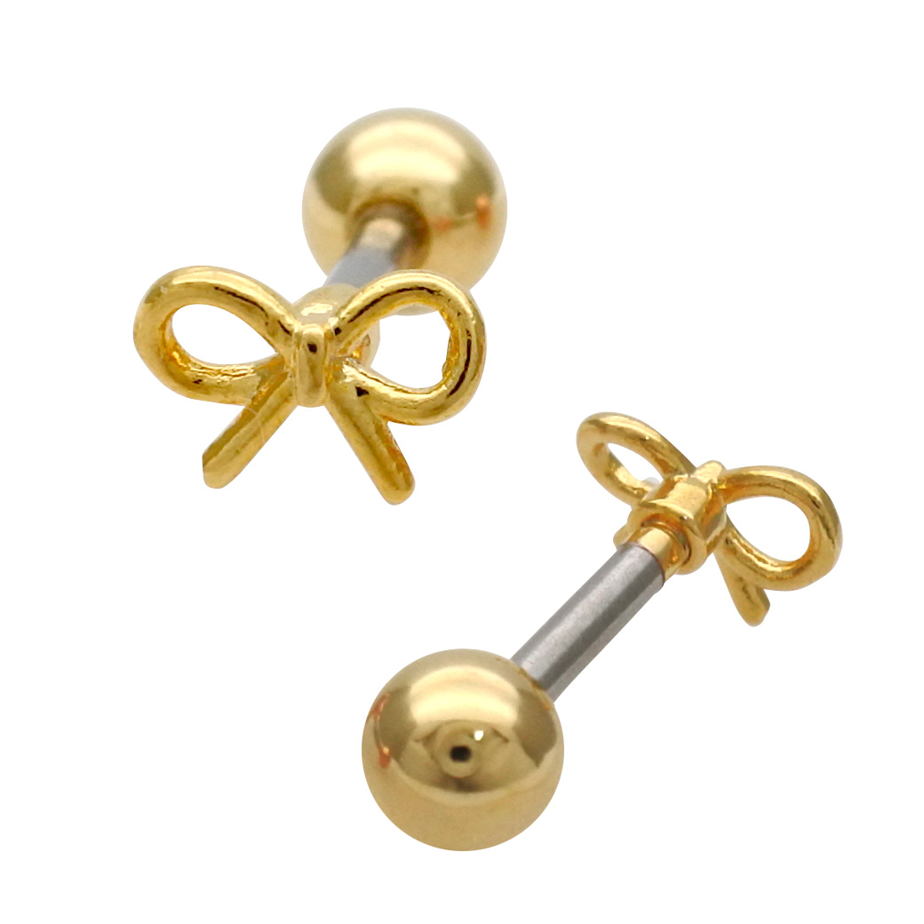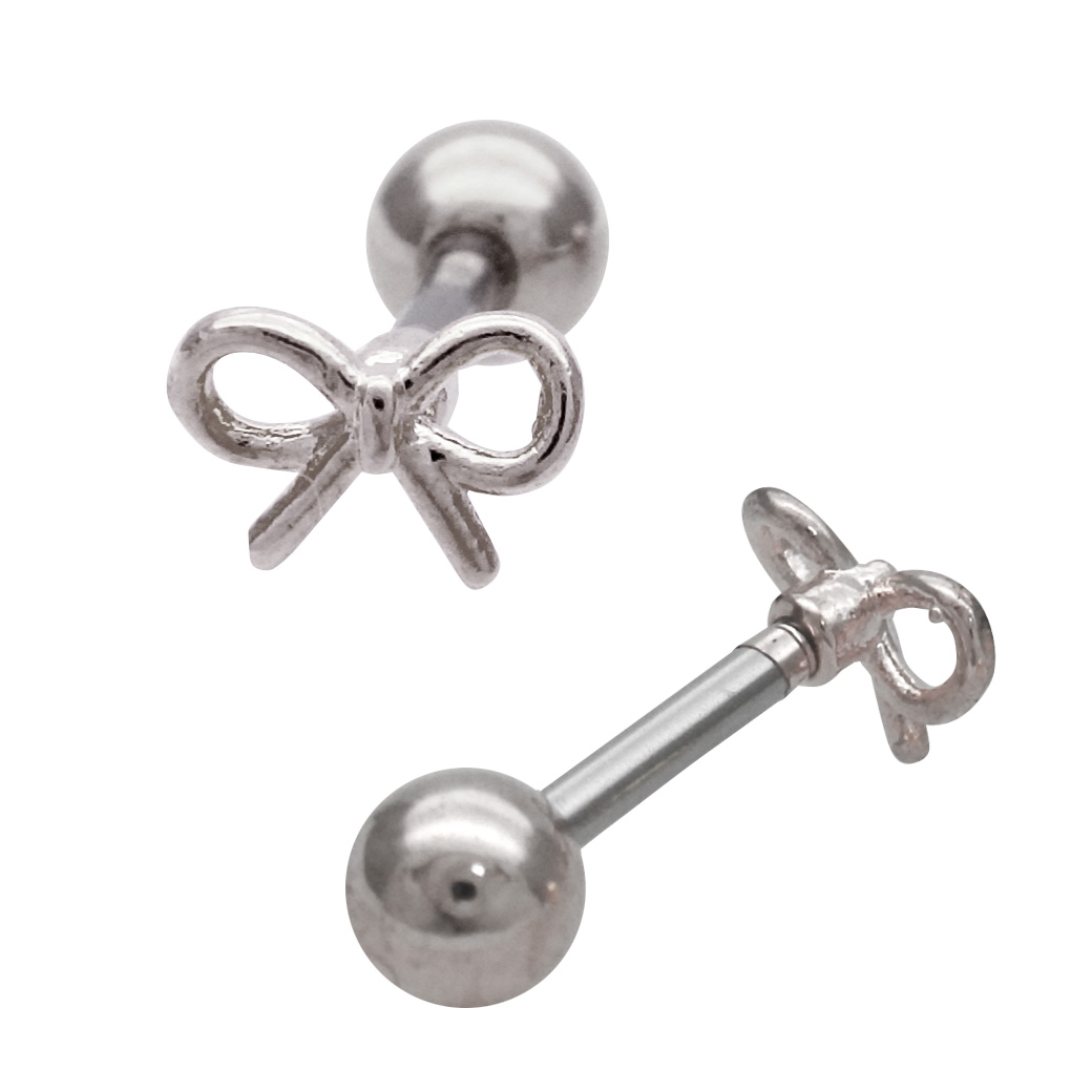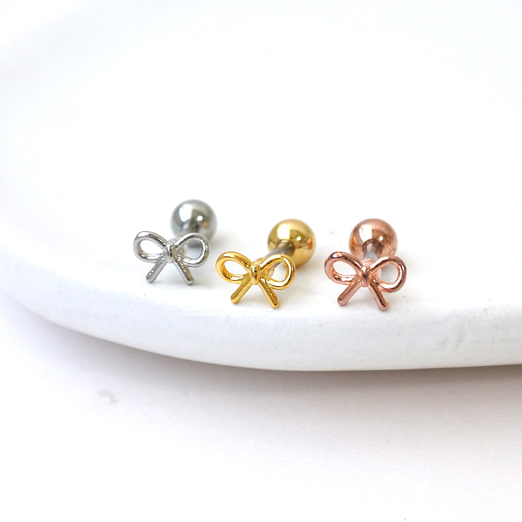 【12月再入荷】[14G 16G ]華奢で愛らしいメタル リボン モチーフ ストレート 軟骨ピアス ヘリックス ボディピアス 1116