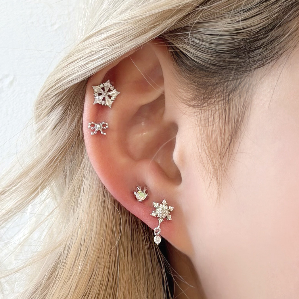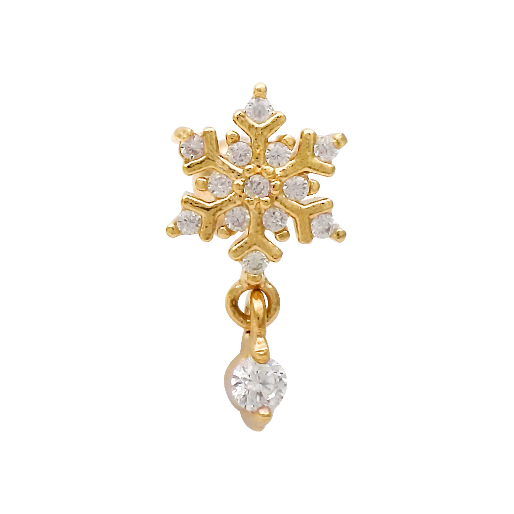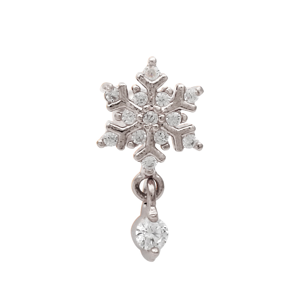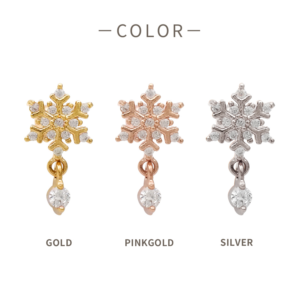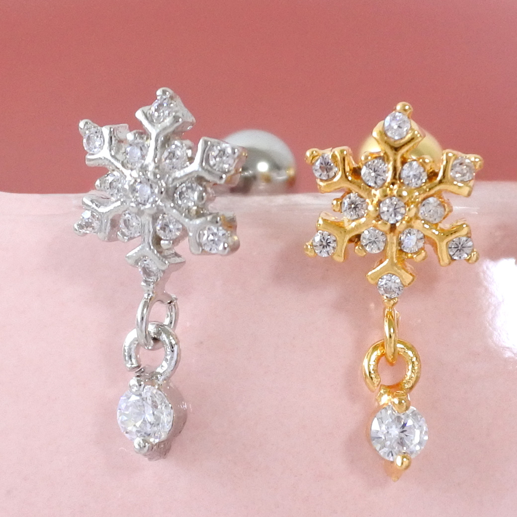 【12月新作】[14G 16G ]ゆらゆら揺れるCZ が上品で可愛い ♪雪の結晶 モチーフ ストレート 軟骨ピアス ヘリックス ボディピアス 1120
