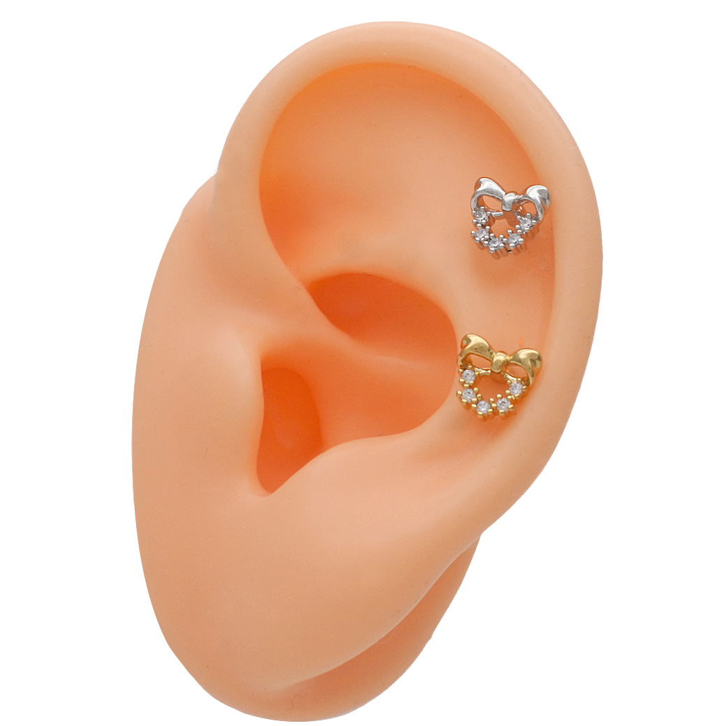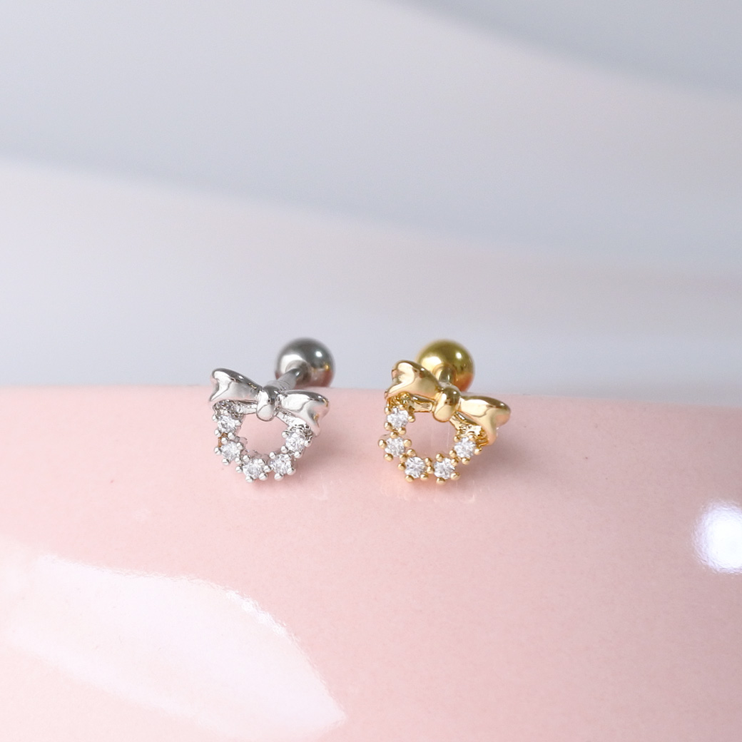 【12月新作】[14G 16G ]クラシカルなリボン フォルムにジュエリー のような輝きをプラスストレート 軟骨ピアス ヘリックス ボディピアス 0659