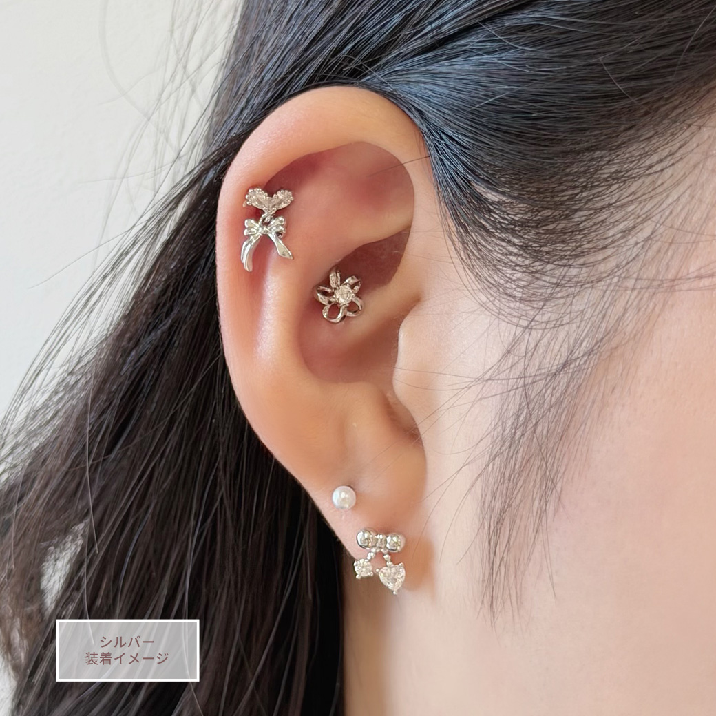 【12月新作】[14G 16G ]花 びらのラインが優しい立体感を演出ツイン フラワー ジュエルストレート 軟骨ピアス ヘリックス ボディピアス 0712