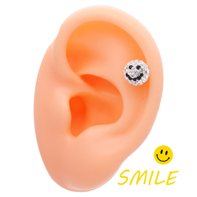 [16G]POPでCUTE!!キラキラ360度可愛い大粒パヴェスマイル♪クリスタルカラー♪軟骨ピアスボディピアス 0394