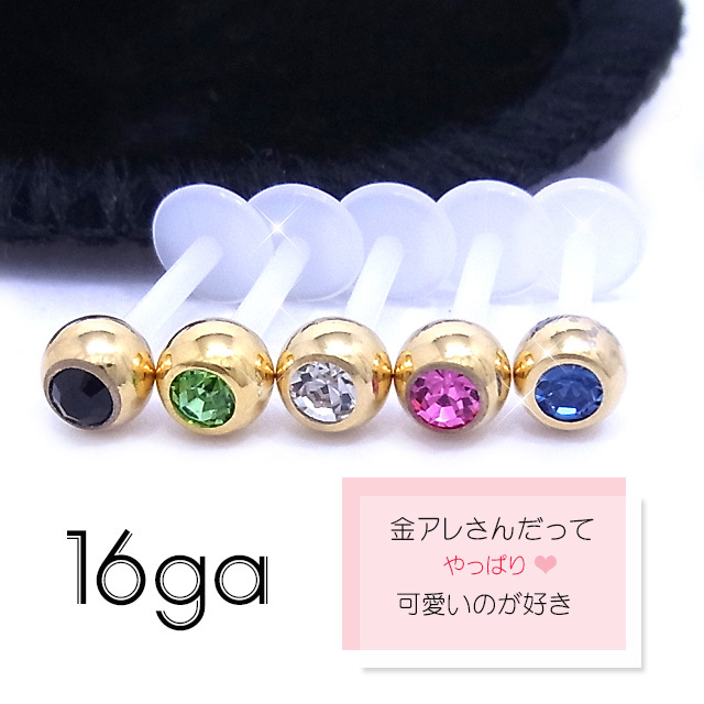 [16G]金属アレルギー対応♪シンプルGOLD×1粒ストーン 軟骨ピアス ラブレット トラガス ボディピアス 0041 SS