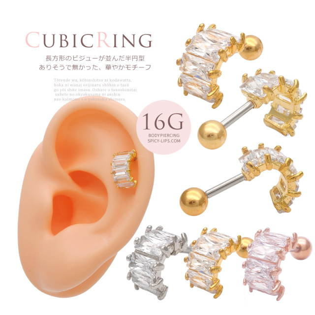 [16G]豪華な輝き華やかリングビジューモチーフ。印象的なアクセント!軟骨ピアスボディピアス 0623