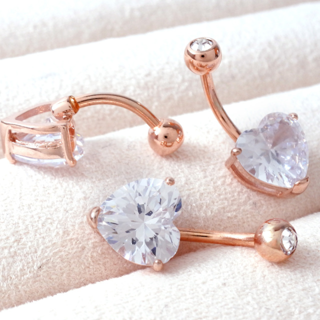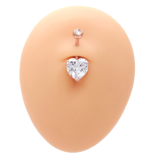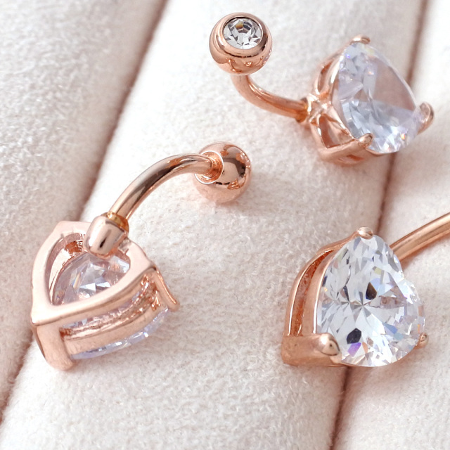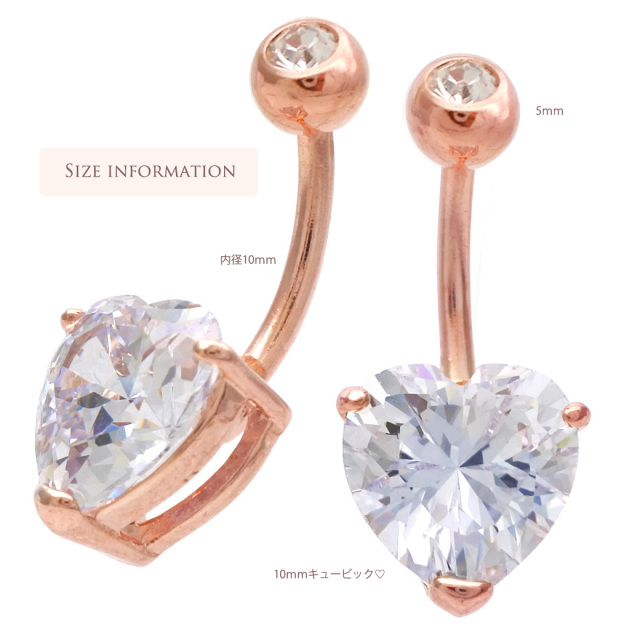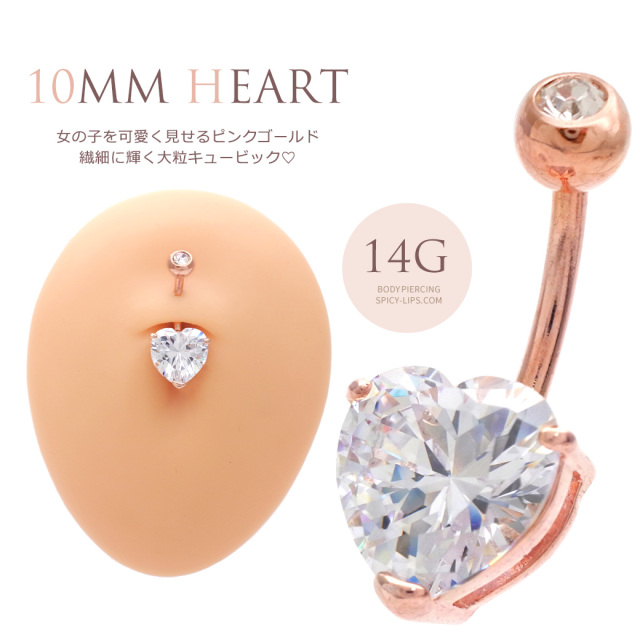 [14G]女の子を可愛く見せるピンクゴールド入荷♪繊細に輝くハートクリスタルキュービックへそピアスボディピア0216
