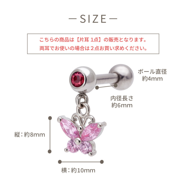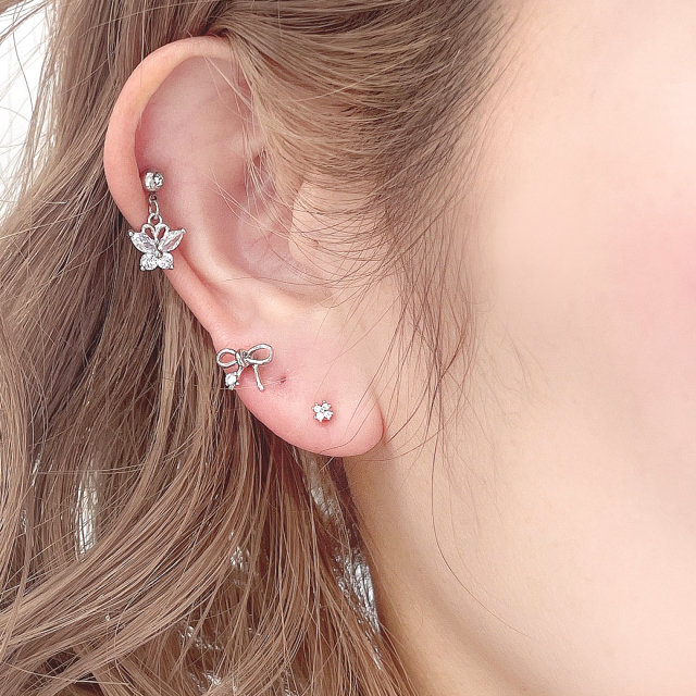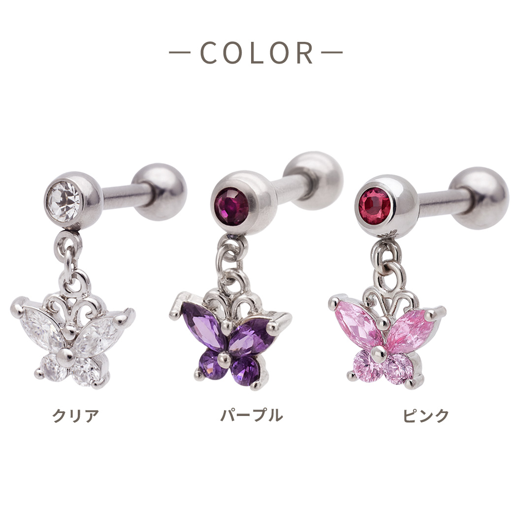 【11月再入荷】[16G14G]ゆらゆら揺れて上品×可愛いキュービックバタフライ silver 軟骨ピアスボディピアス 0269