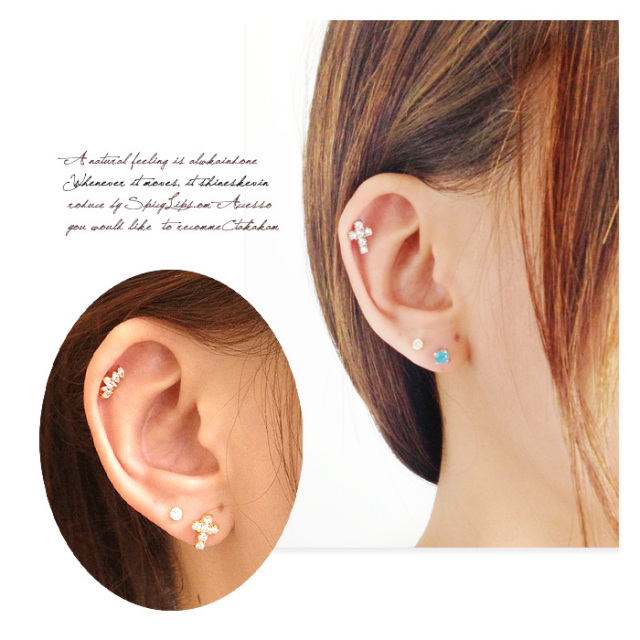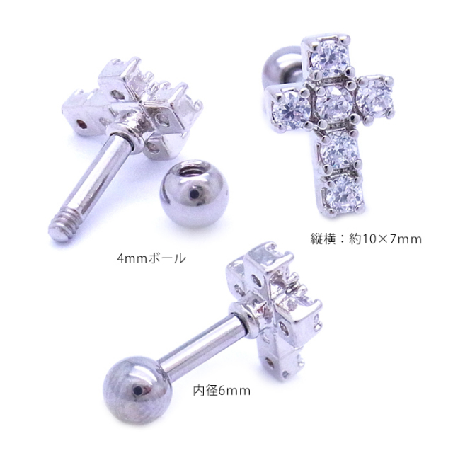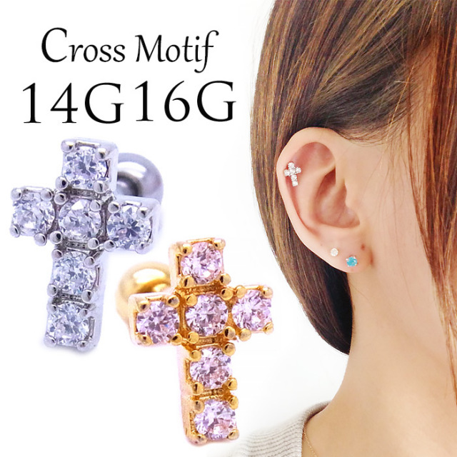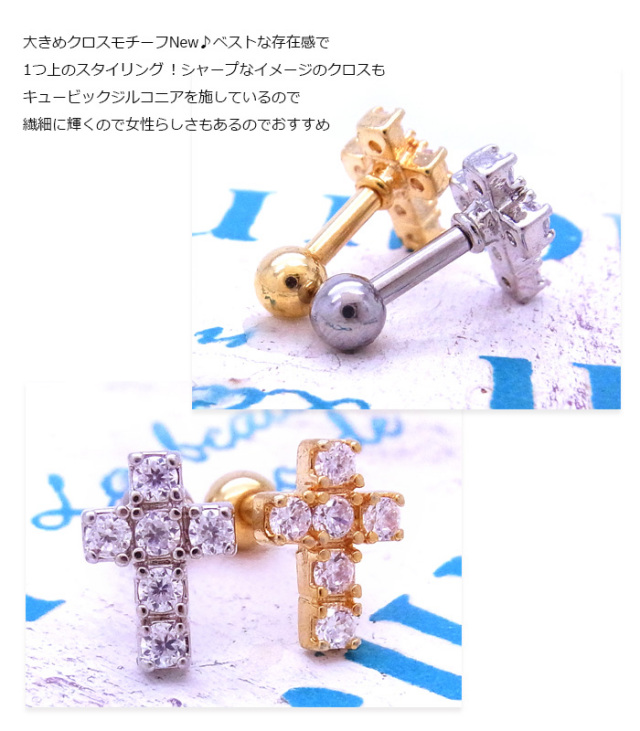 [16G14G]リクエストにお応えして!大きめクロス♪ベストな存在感で1つ上のスタイリング キュービックジルコニアクロス 軟骨ピアスボディピアス0536