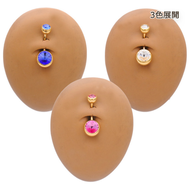 ★スペシャル★プライス★[14G ]使える定番アイテム♪大粒ストーン9mm ダブルジュエル へそピアス ボディピアス 0560