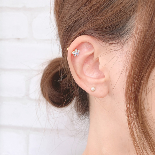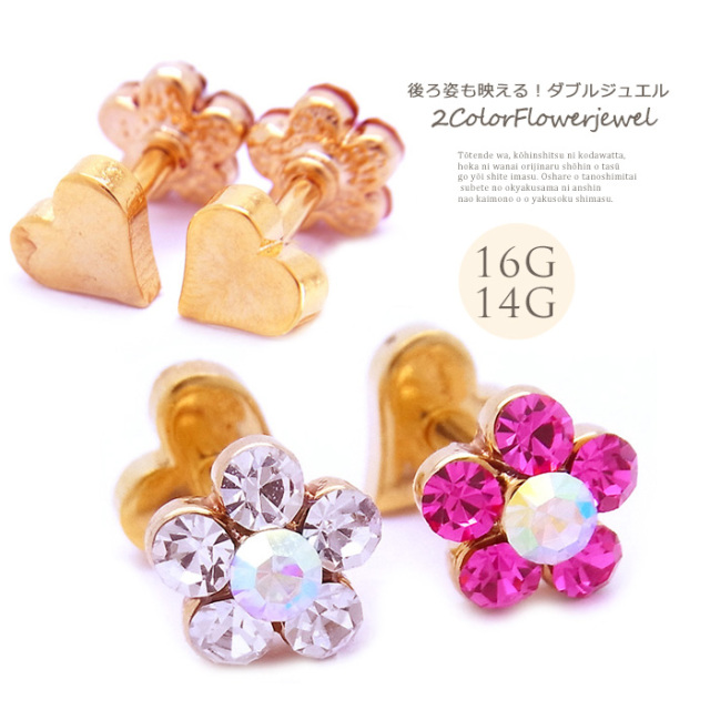 [14G16G]フラワー&ハートキャッチ heart flower ダブルフェイス 軟骨ピアス ヘリックス ボディピアス [ゴールド] 0058