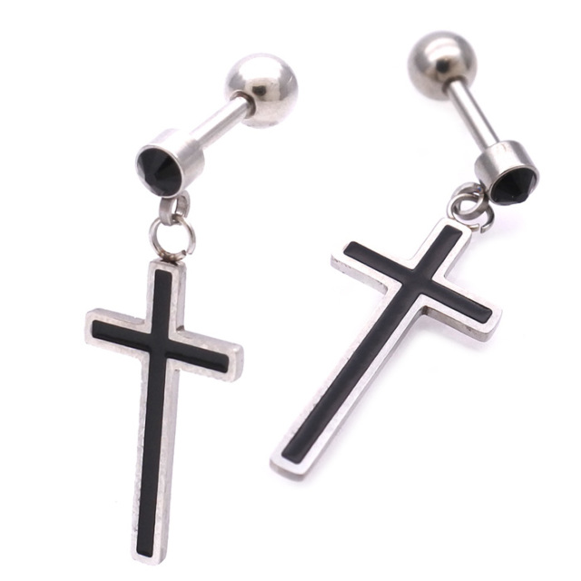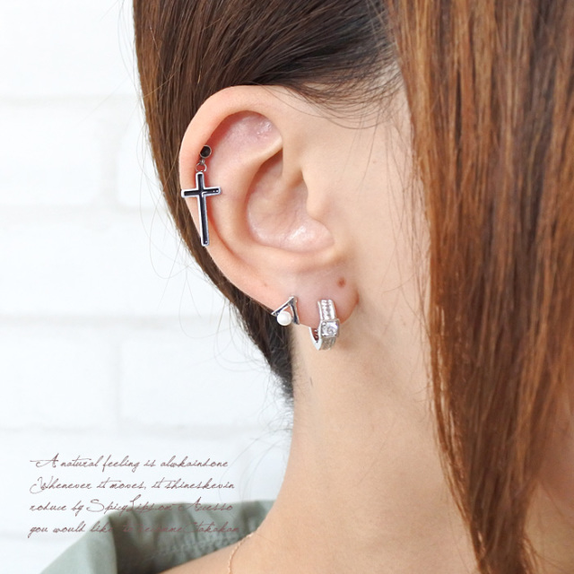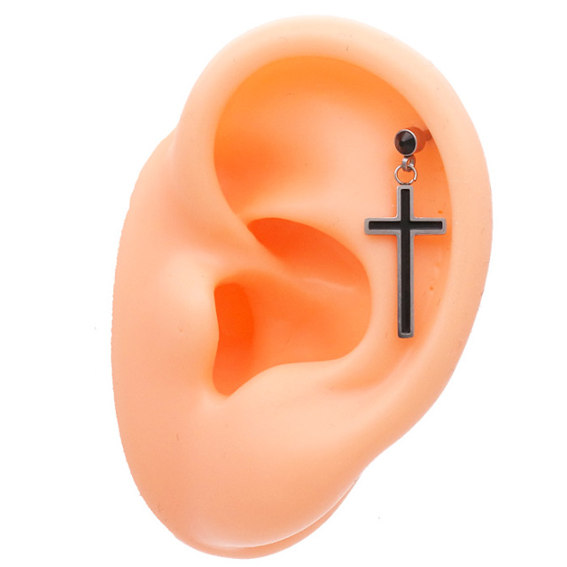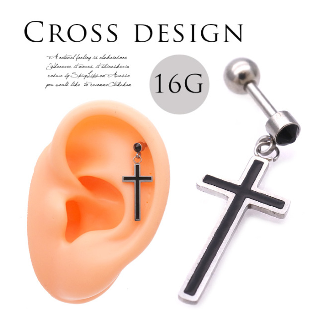 [16G]存在感のあるスタイリッシュBlackラインクロスデザイン ユニセックス メンズ 軟骨ピアス ヘリックス ボディピアス 0641