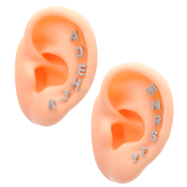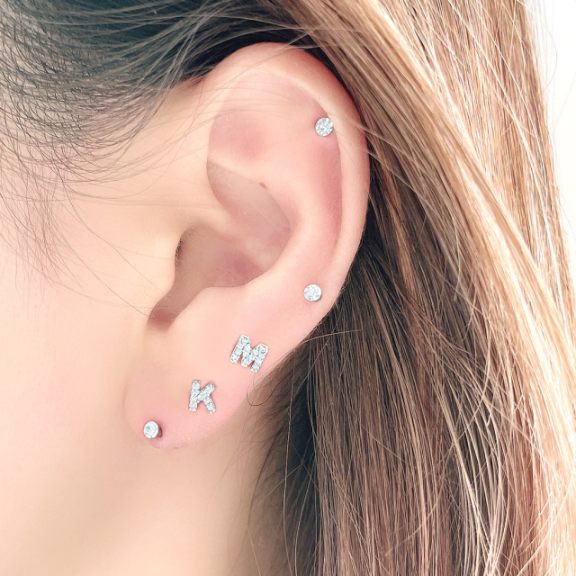 【11月再入荷】14Gサイズ新登場![14G 16G]さりげなく使えるサイズ感。自分だけの特別なイニシャル ジュエル キュービックジルコニア 軟骨ピアス 推し 推し活 ボディピアス [シルバー]0701