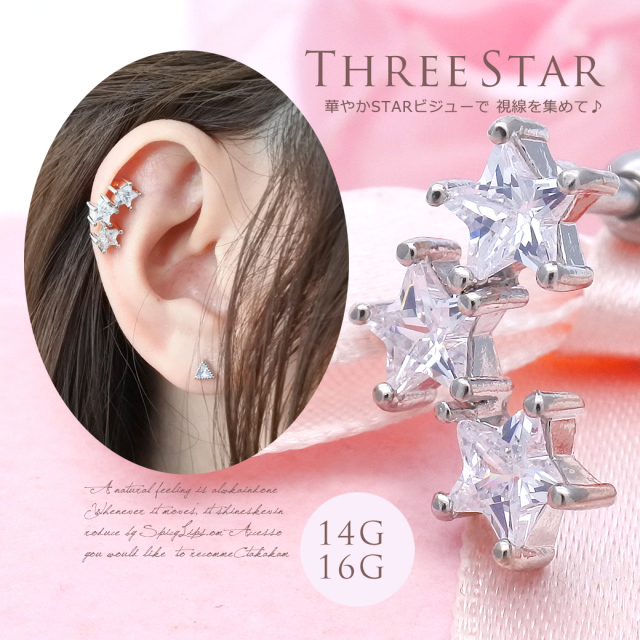 [16G14G]華やかスタービジューで視線を集めて♪ 星 軟骨ピアスボディピアス 0072
