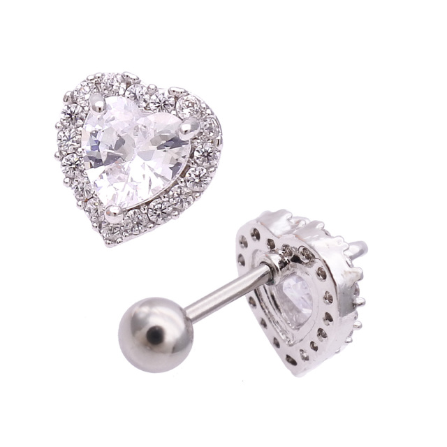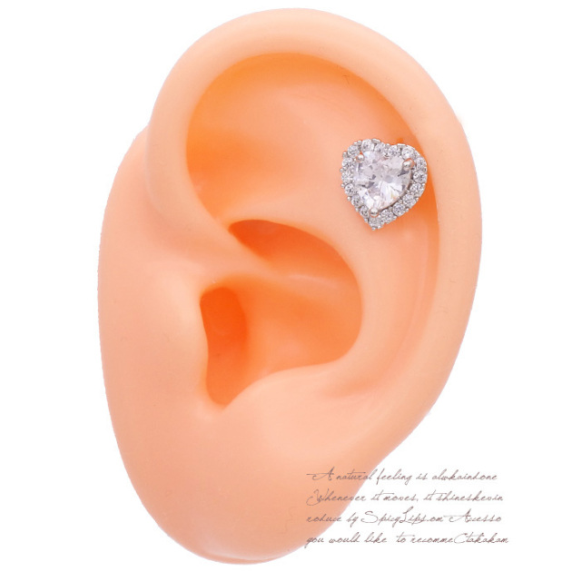 [14G 16G ]上質なキュービックを使用した大粒ハート。洗練された上品な印象シルバー 軟骨ピアス ヘリックス ボディピアス 0792