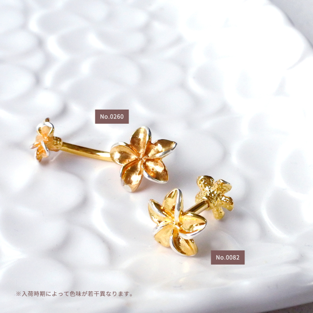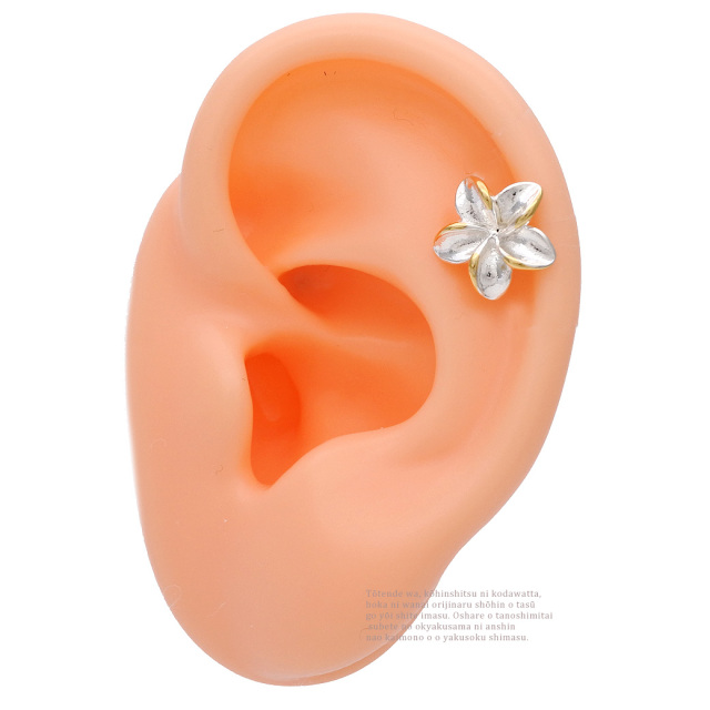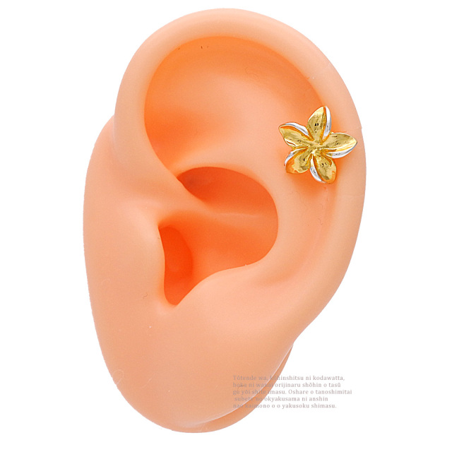 【4月再入荷】 [16G 14G ]後ろ姿も可愛い♪シャイニーTwinプルメリア軟骨ピアス ボディピアス 0082