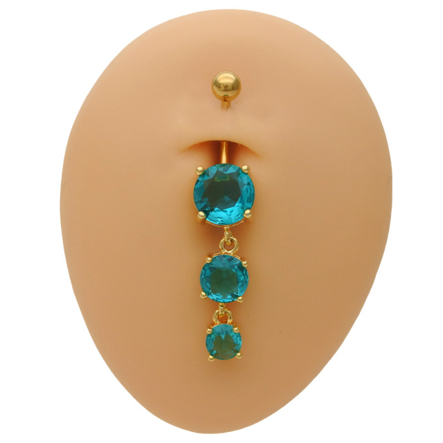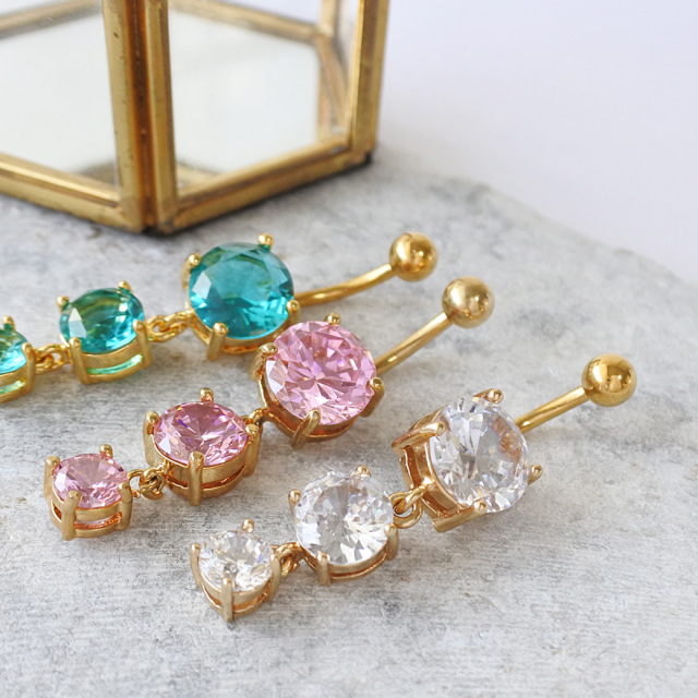 【4月再入荷】[14G] 大粒のCZ輝く 存在感ある 3連キュービック ゴールド へそピアス ボディピアス 0088