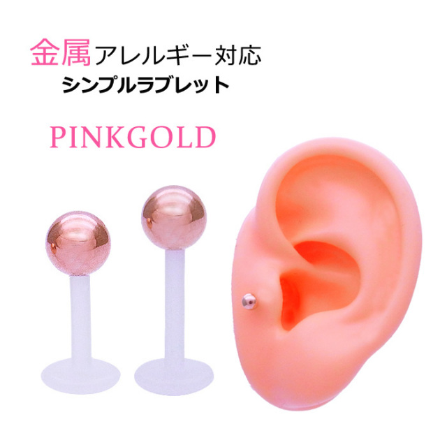 [16G]金属アレルギー対応!使えるシンプル♪ ピンクゴールド ボール 軟骨ピアス ラブレット トラガス ボディピアス 1044 SS