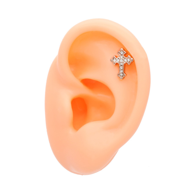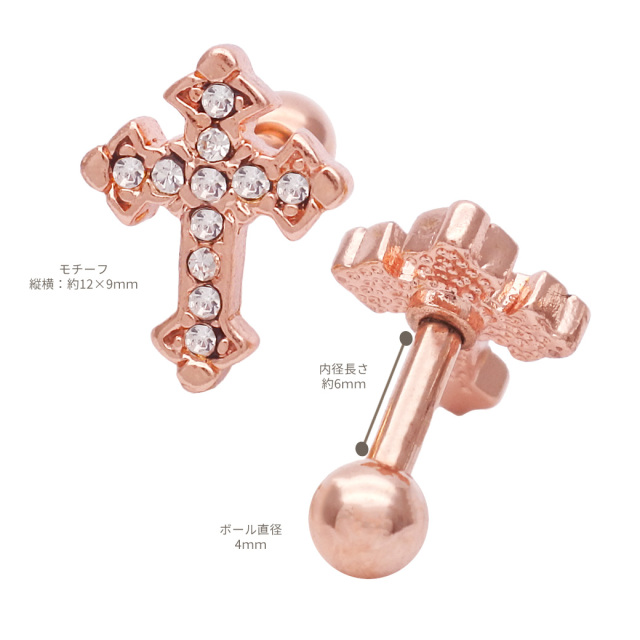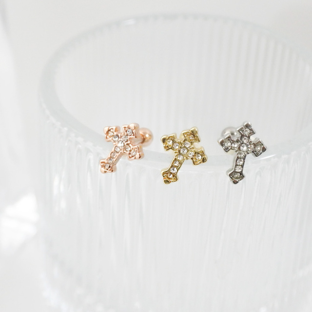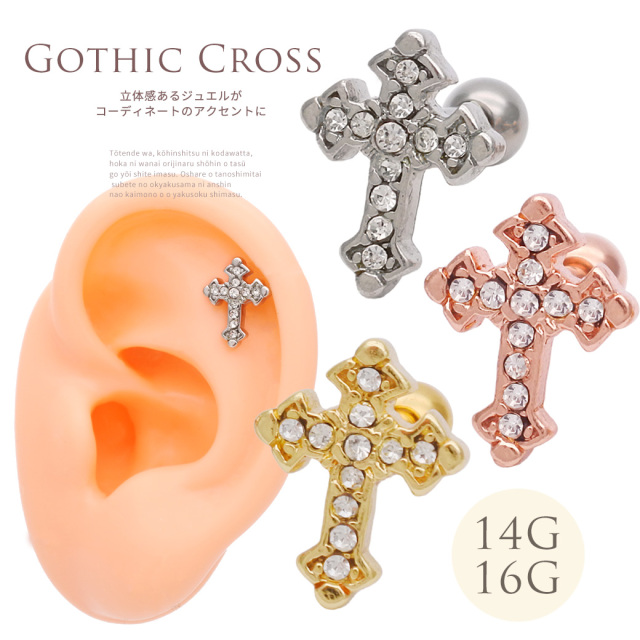 【11月再入荷】[16G14G]コーディネートのアクセントに!GOTHICクロス ストレート軟骨ピアス ヘリックス ボディピアス1098