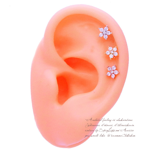 [16G]丸い花びらが愛らしい存在感♪ちびCZフラワー flower 軟骨ピアス ヘリックス ボディピアス 1119