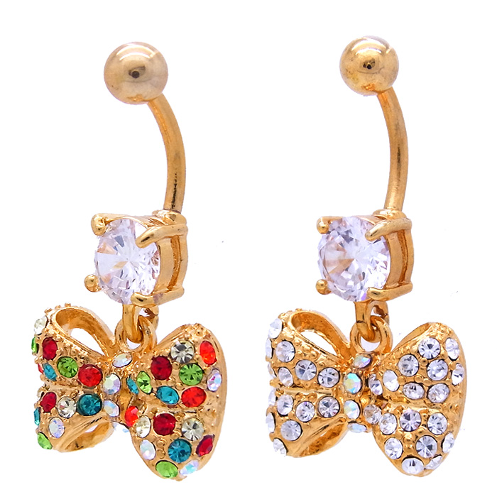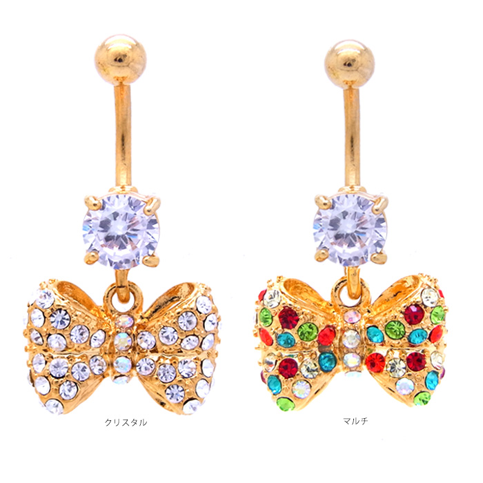 ★スペシャル★プライス★[14G]キュートさが数段アップ♪キラキラと豪華なぷっくり大きめリボンへそピアスボディピアス0221