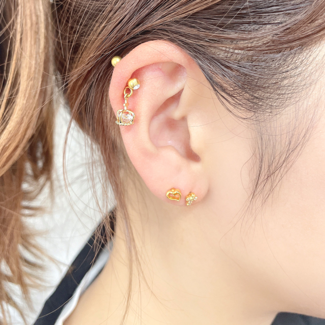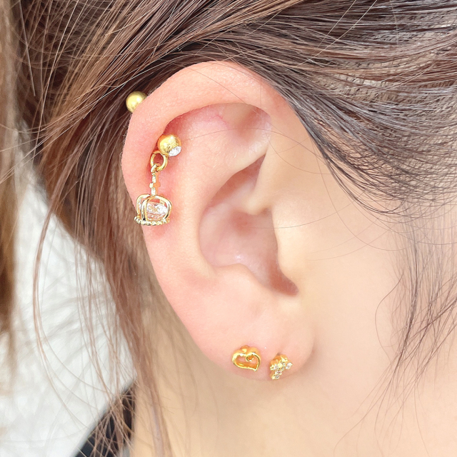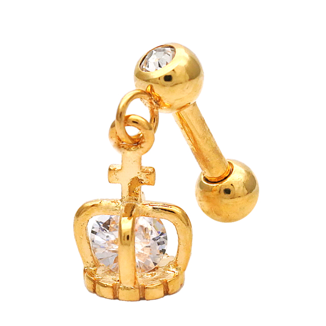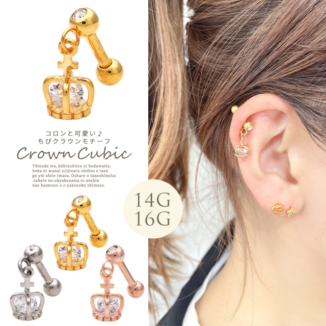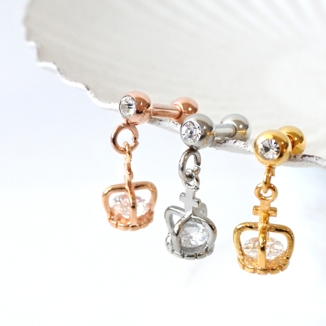 [16G14G]コロンと可愛い♪王冠の中のCZが繊細に煌く。クラウン 軟骨ピアスボディピアス 0264