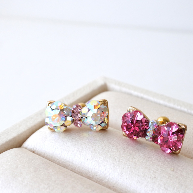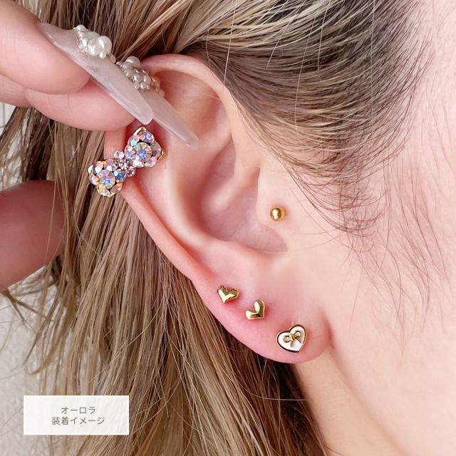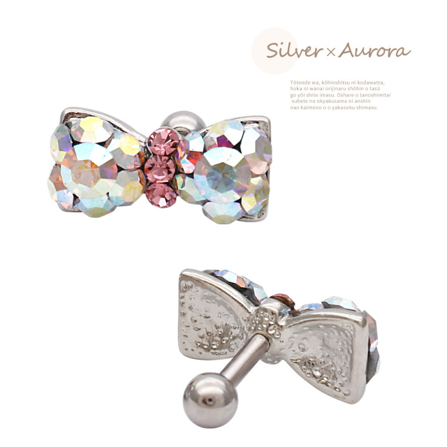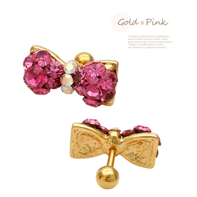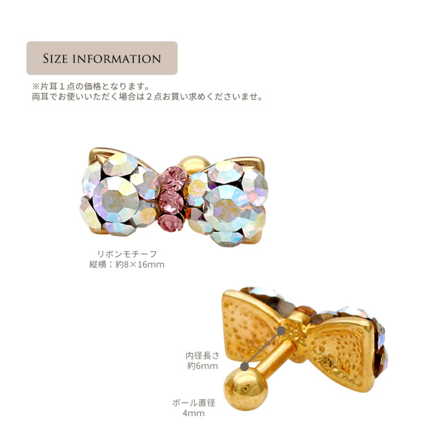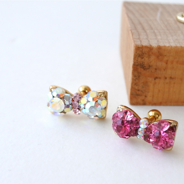 【11月再入荷】[16G 14G]1点で充分すぎるほどかわいい!贅沢ビジュー 大きめリボン 軟骨ピアス ヘリックス ボディピアス 0294