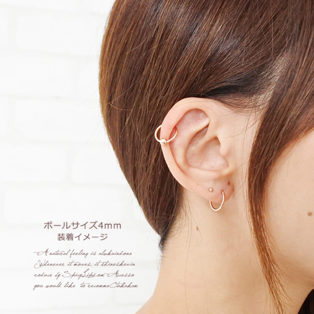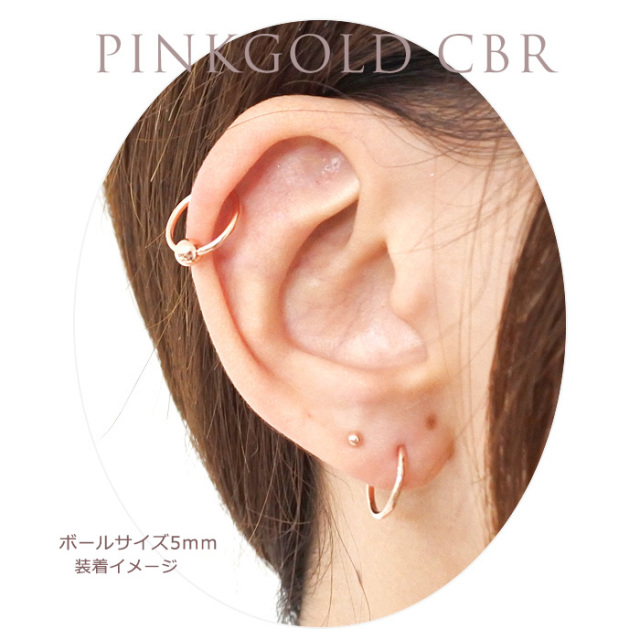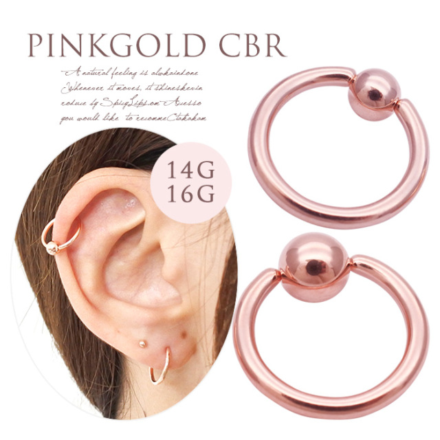 [16G14G]優しい色合いが人気★シンプルPINKゴールドキャプティブビーズリング軟骨ピアスボディピアス 0329