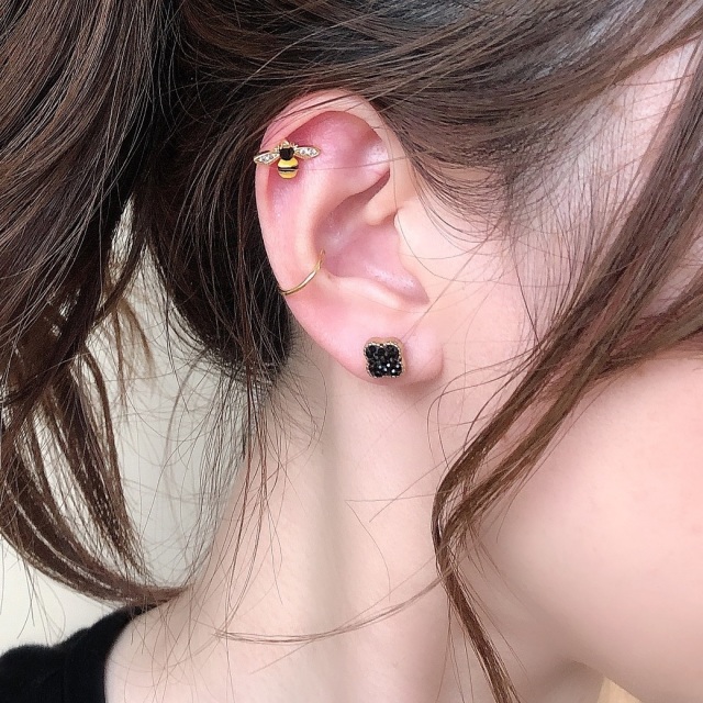 大きめサイズで存在感があって可愛いのに、ブラック×ゴールドで大人っぽくて上品な感じです♪ヘリックスに付けるとめちゃくちゃ可愛いです!結構どんな服装でも合いそうなデザインだから当分付けっぱなしにします(*^_^*)