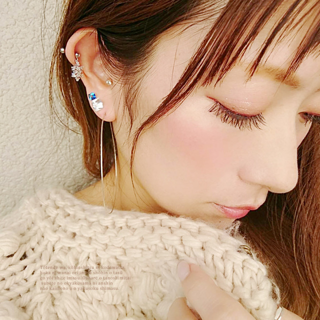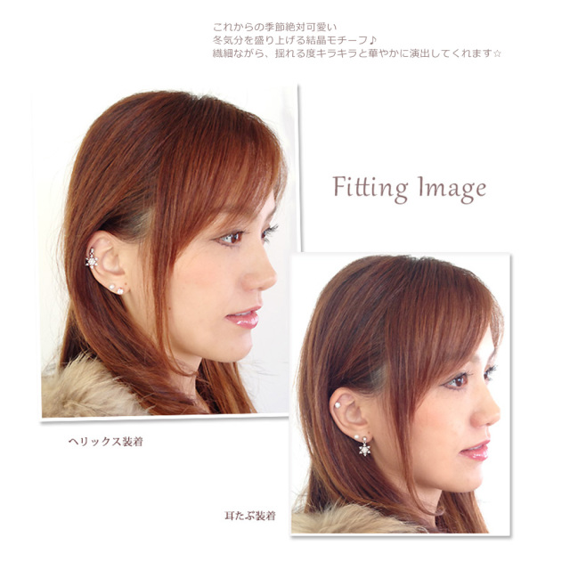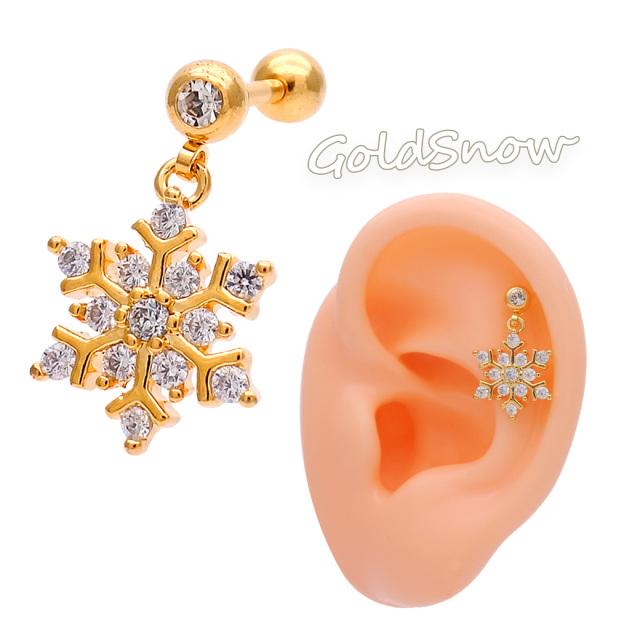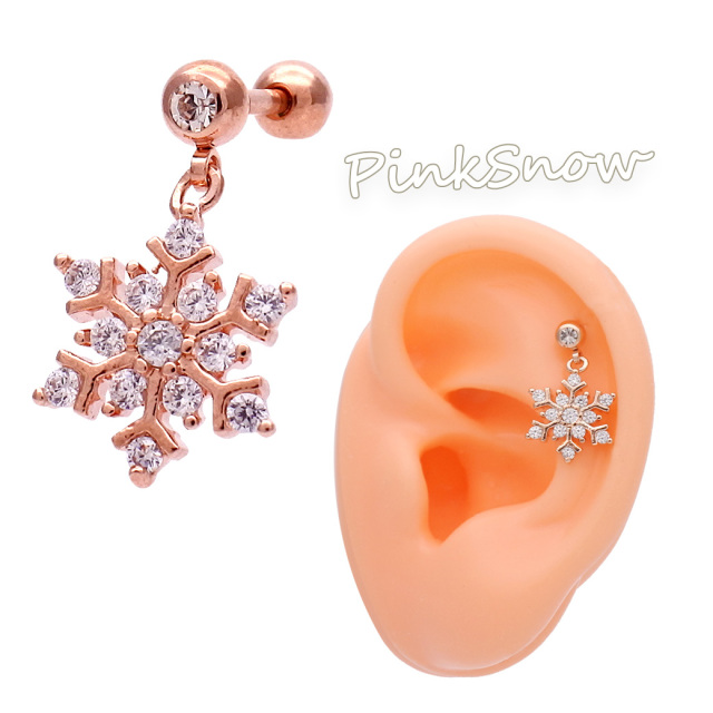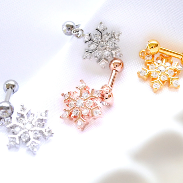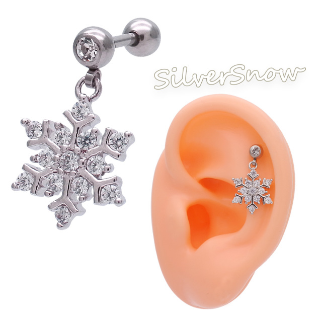 [16G 14G ]揺れる度キラキラ華やか☆雪の結晶モチーフ軟骨ピアスボディピアス 0384