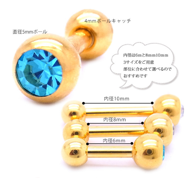[14G]新色登場☆選べる内径大粒ストーンキャッチシンプルシャフト軟骨ピアスボディピアス 0421