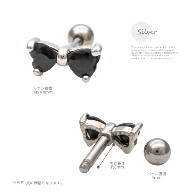 [14G 16G ]コーディネートに甘さをちょっぴり足せる♪大人かわいい ブラックリボン 軟骨ピアス ボディピアス 0446