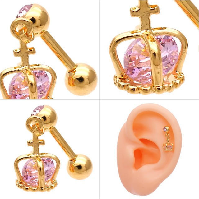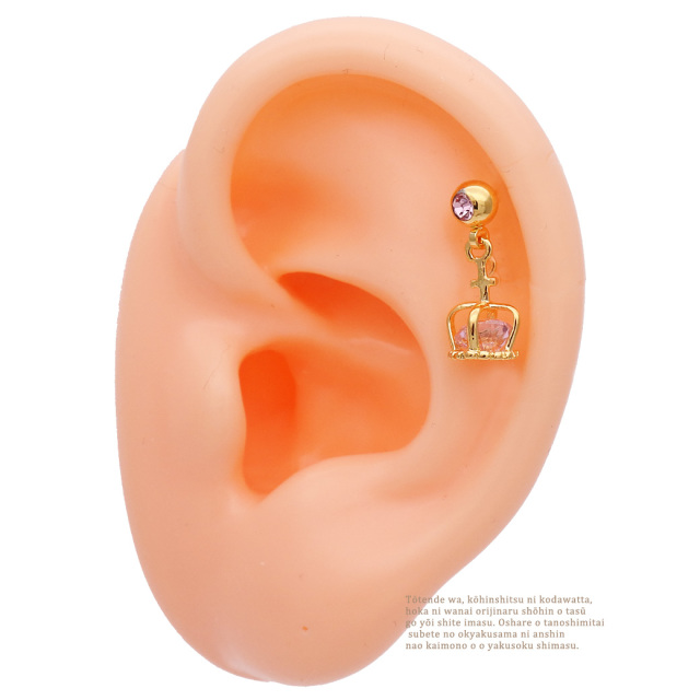 [16G14G]王冠の中のCZが繊細に煌く…クラウン軟骨ピアスボディピアス 0480