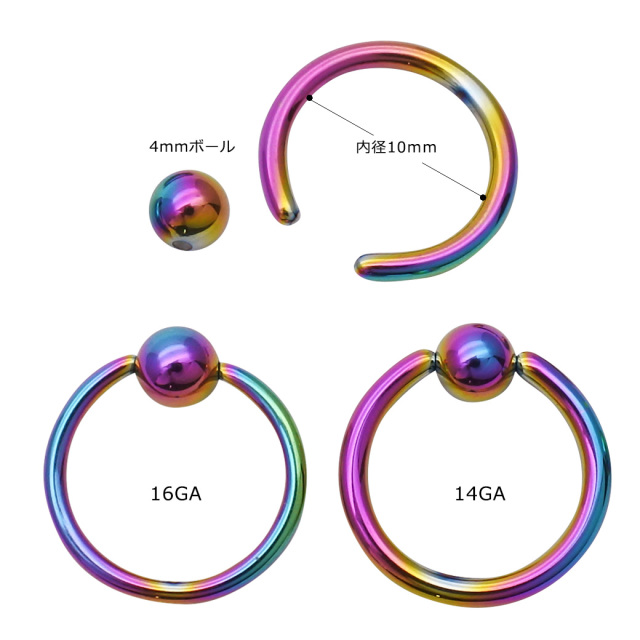 [16G14G]お洒落を楽しむ♪カラフル♪チタンカラーキャプティブリングCBR レインボー 軟骨ピアスボディピアス 0549