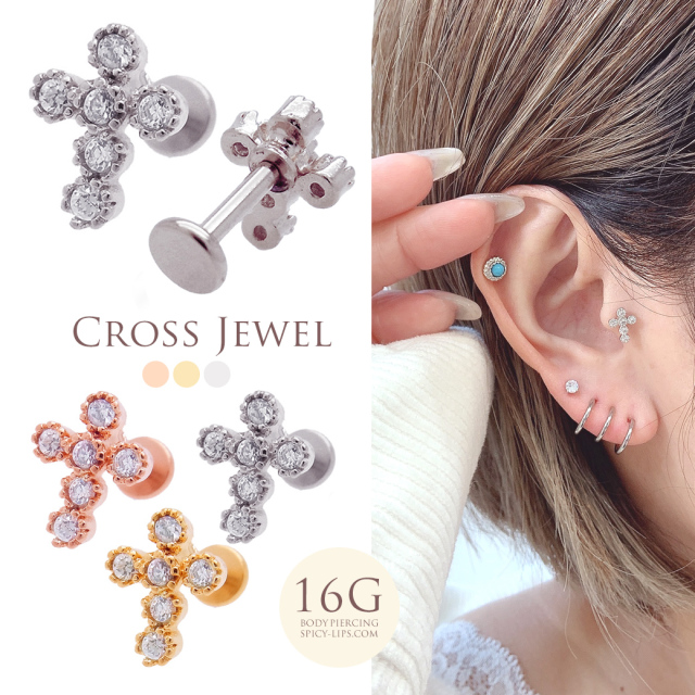 [16G]3色展開!インターナル☆キュービッククロス ラブレット軟骨ピアスラブレット トラガス ボディピアス 0595