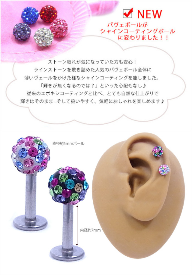 [16G14G]◆シャインコーティングパヴェ◆360℃可愛い♪華やかミックスパヴェラインストーントラガスラブレット軟骨ピアスボディピアス 0634 SS