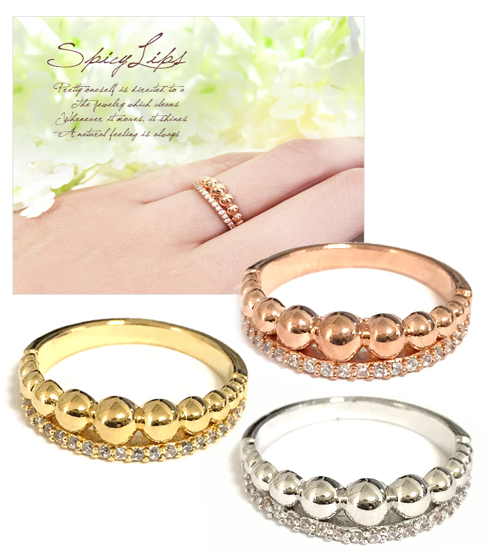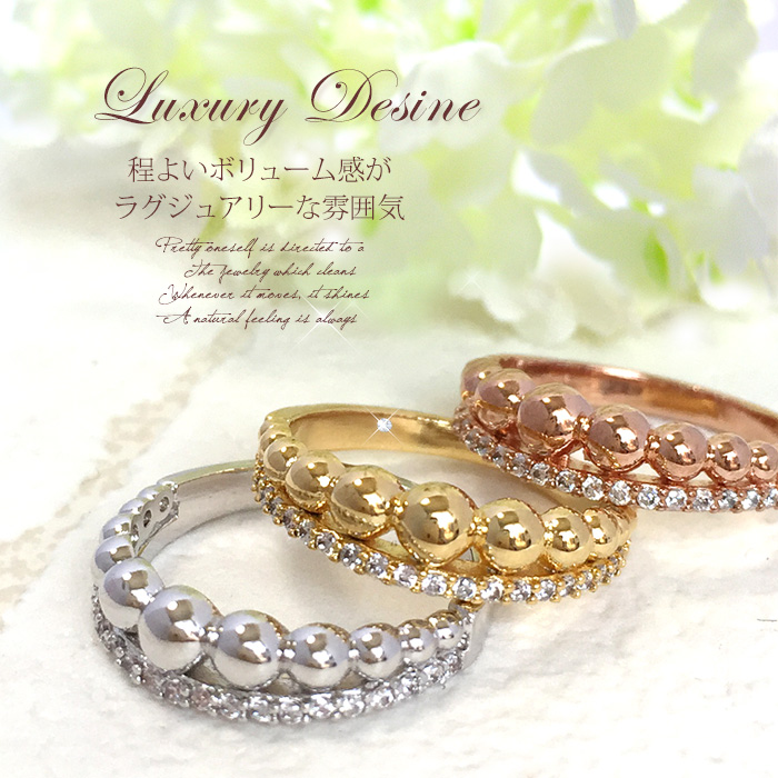 程よいボリューム感がラグジュアリーな雰囲気。1連ラインストーン×メタリックデザインリング 0734